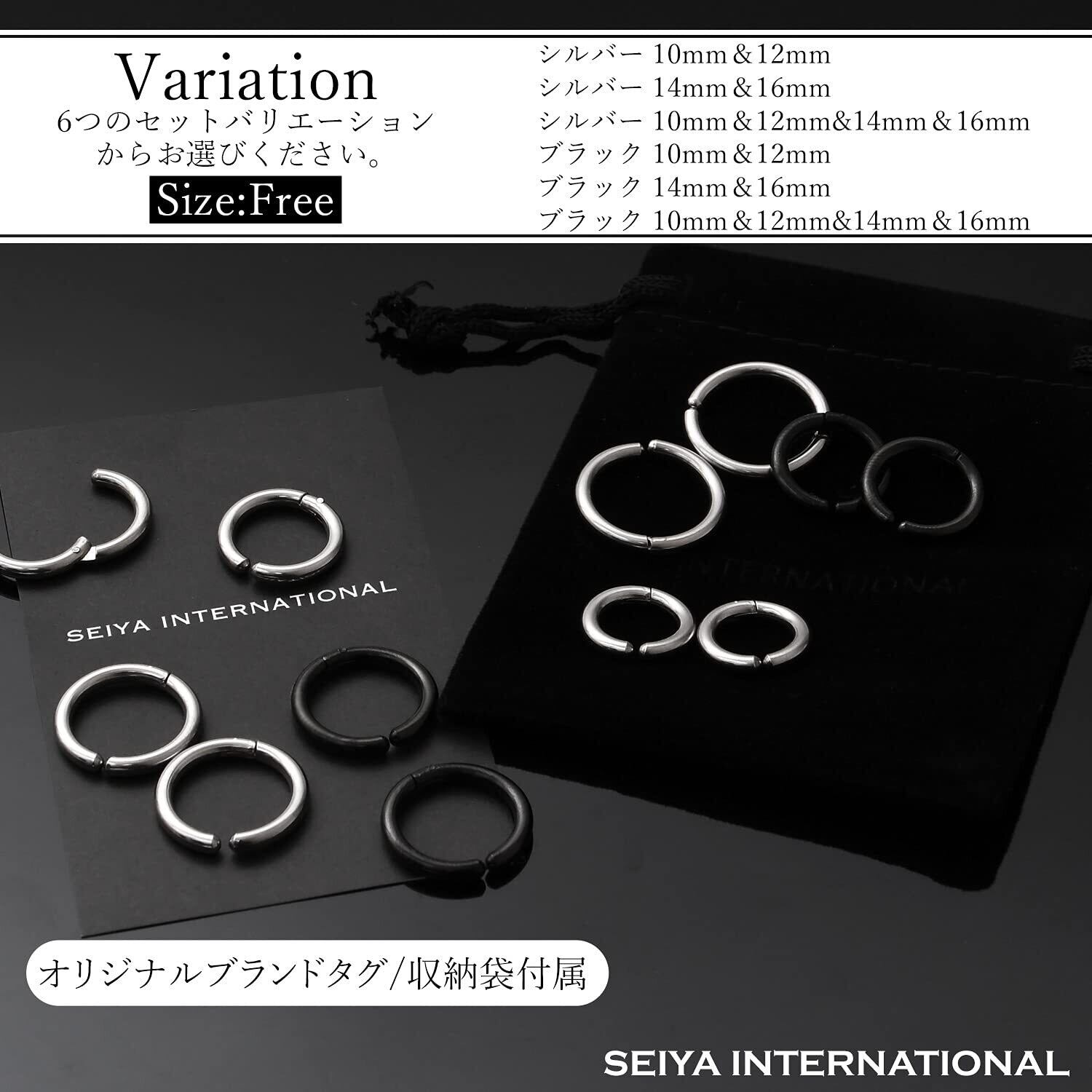 【特価セール】[SEIYA INTERNATIONAL] イヤリング メンズ フェイクピアス イヤーカフ フープイヤリング ノンホールピアス レディース 両耳セット
