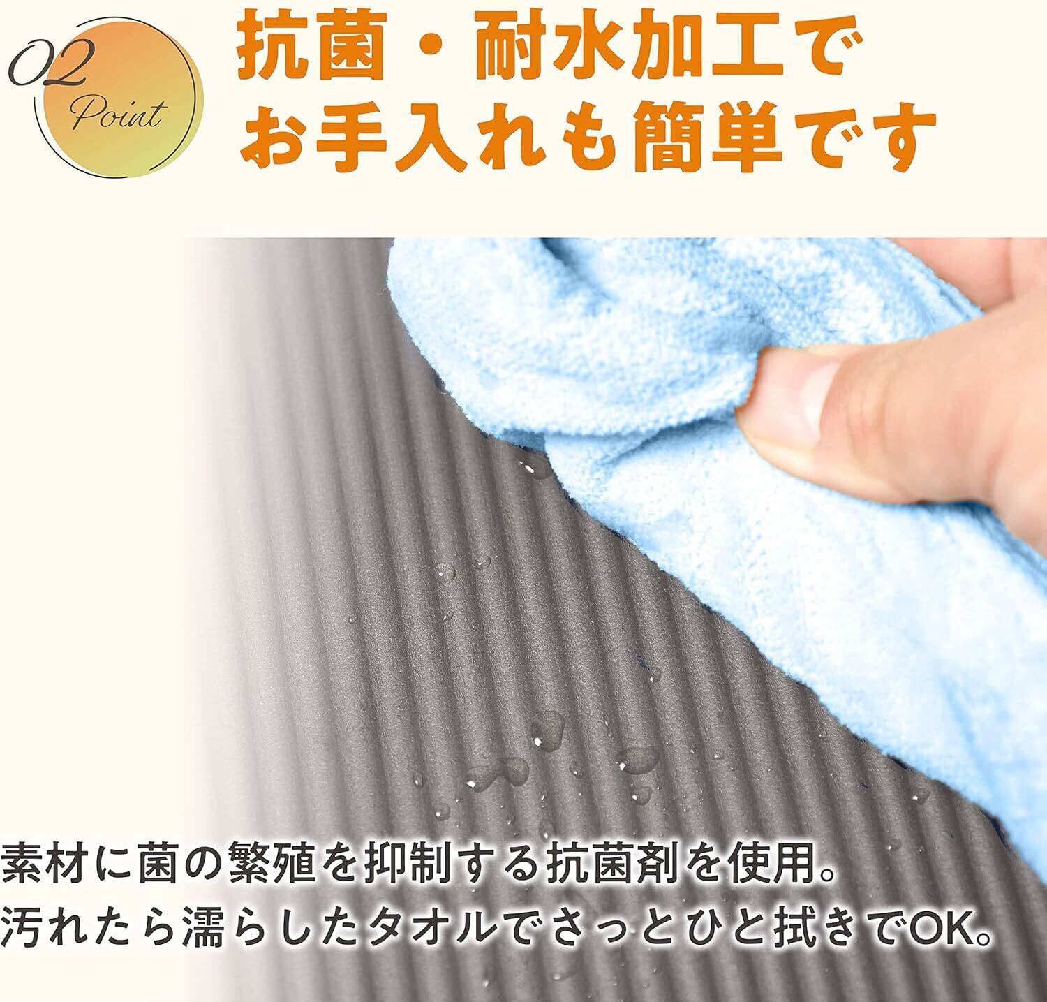 他社のヨガマットで多い縦エンボスだと前後の動きが多いトレーニングやヨガをする際滑ってしまって集中できない。凹凸を横にすることで厚みを残しながらグリップ力もUP!