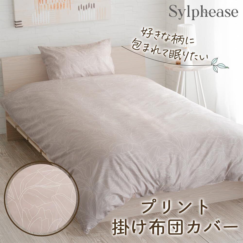 【在庫セール】シルフィーズ 掛けふとんカバー シングル 150×210cm かけ布団カバー ピーチスキン 寝具 ずれ防止 柄 掛布団カバー 掛けカバー オールシーズン 軽い 洗える リーフ柄 ベージュ