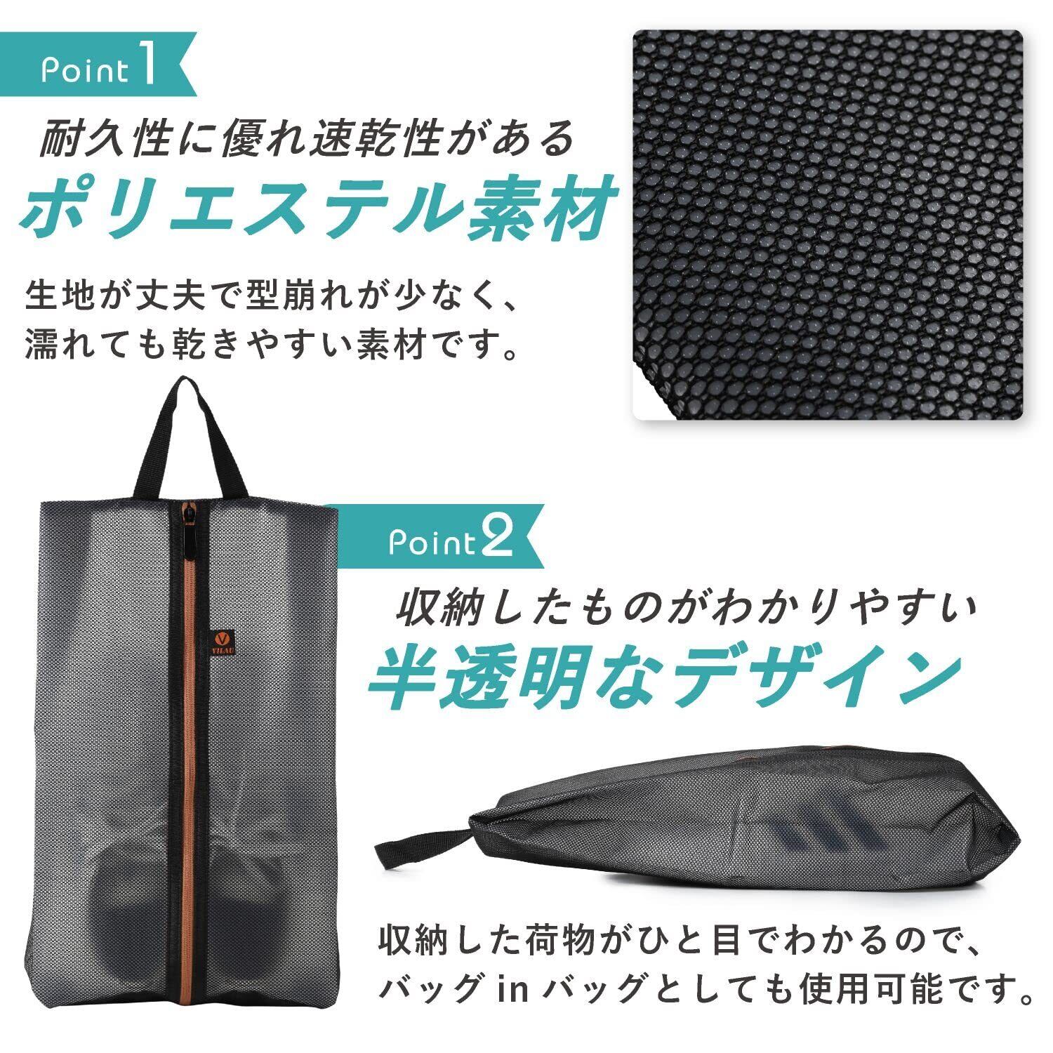 VILAU シューズバッグ シューズケース 半透明 靴入れ 軽量 防水 防臭 スポーツ アウトドア シューズバック 収納バッグ ブラック