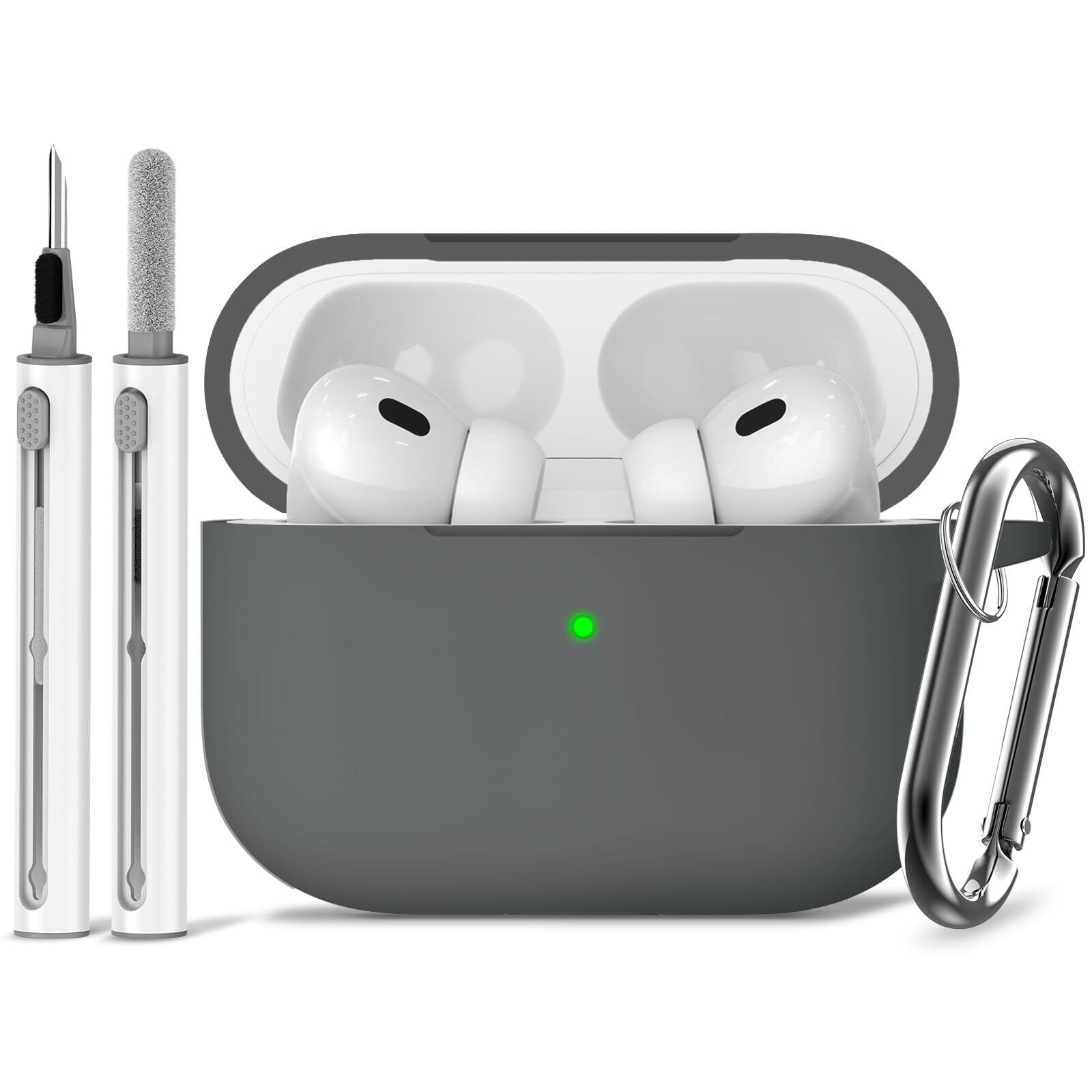 Inesore for AirPods Pro ケース(2023/2022/2019)エアーポッズ プロ 2 ソフトシリコン 保護 ケース カラビナ付き、せいじょうペン装備 全面保護、強力な落下防止、耐衝撃、男性と女性 AirPod pro 2 /1 Gen(USB-C/Lightning Cable) 共用カバー