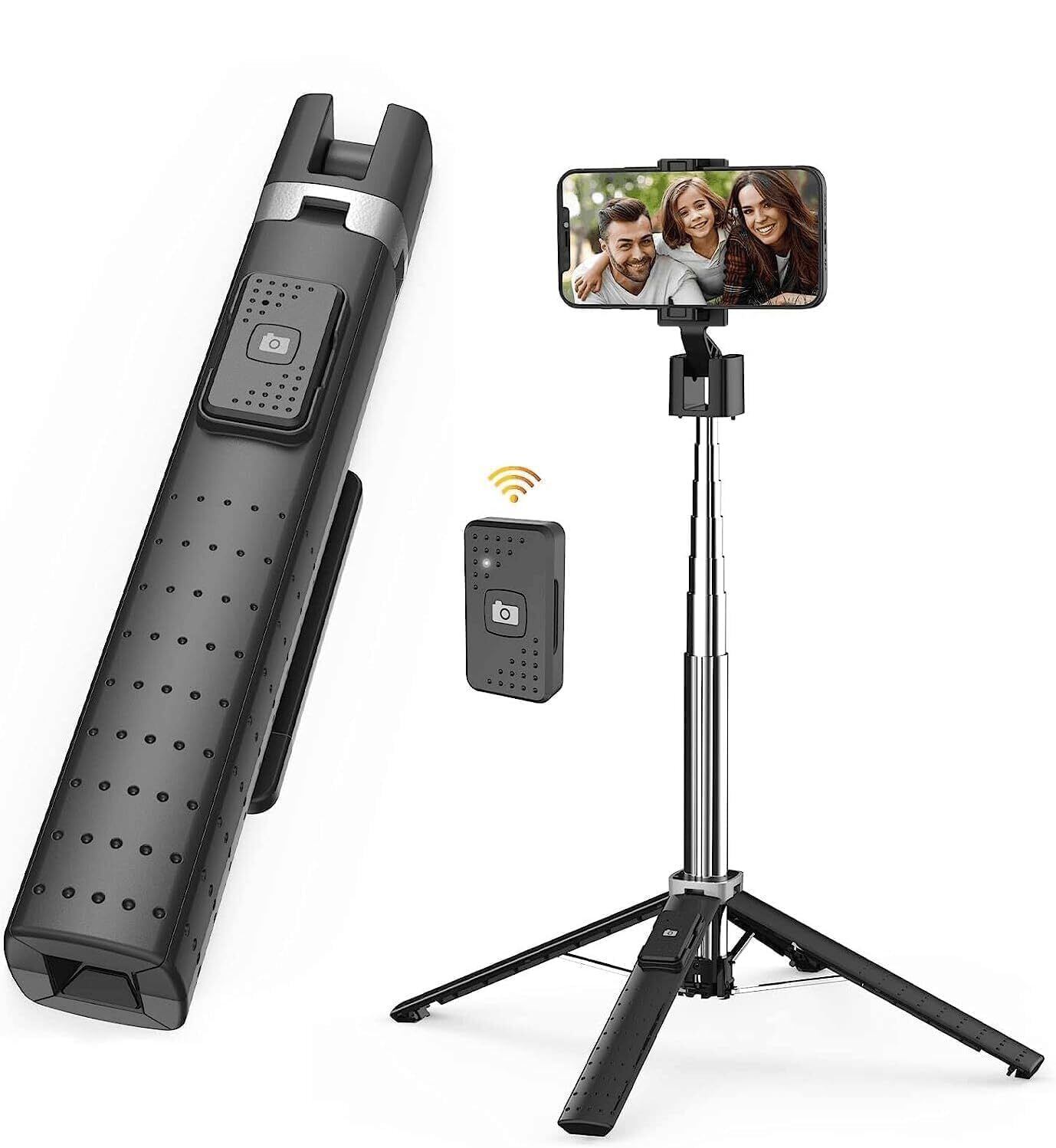 【自撮り棒スマホ 三脚 】 リモートコンボ付き自撮り棒三脚・四本足のマウントは、この自撮り棒を信じられないほど安定させます。量はわずか200g。長さは19 センチメートルから104センチメートルまで伸縮できる。