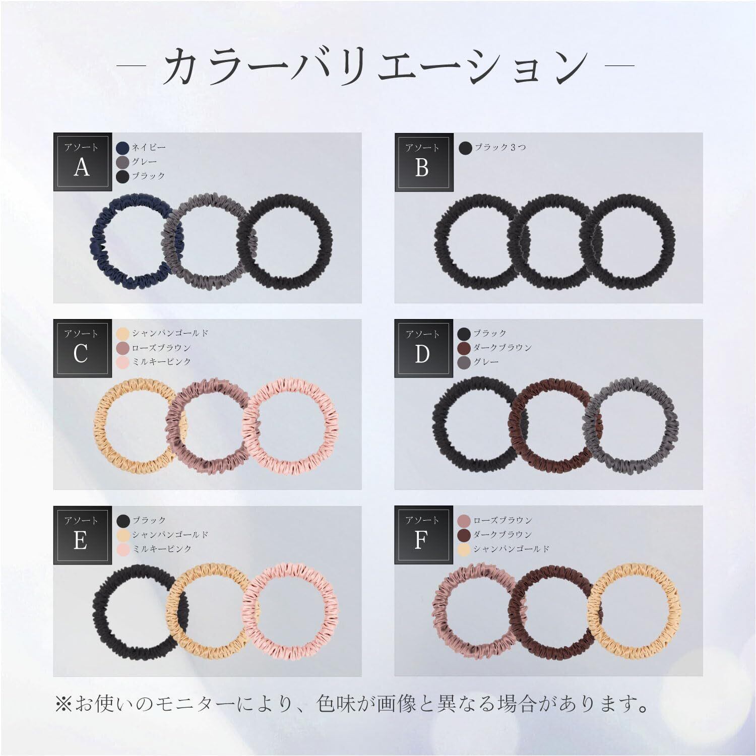 シルク ヘアゴム 3個セット 跡がつかない 天然シルク100% 大人 ダメージレス 髪に優しい シュシュ 髪ゴム 髪留め アソートB (ブラックx3)