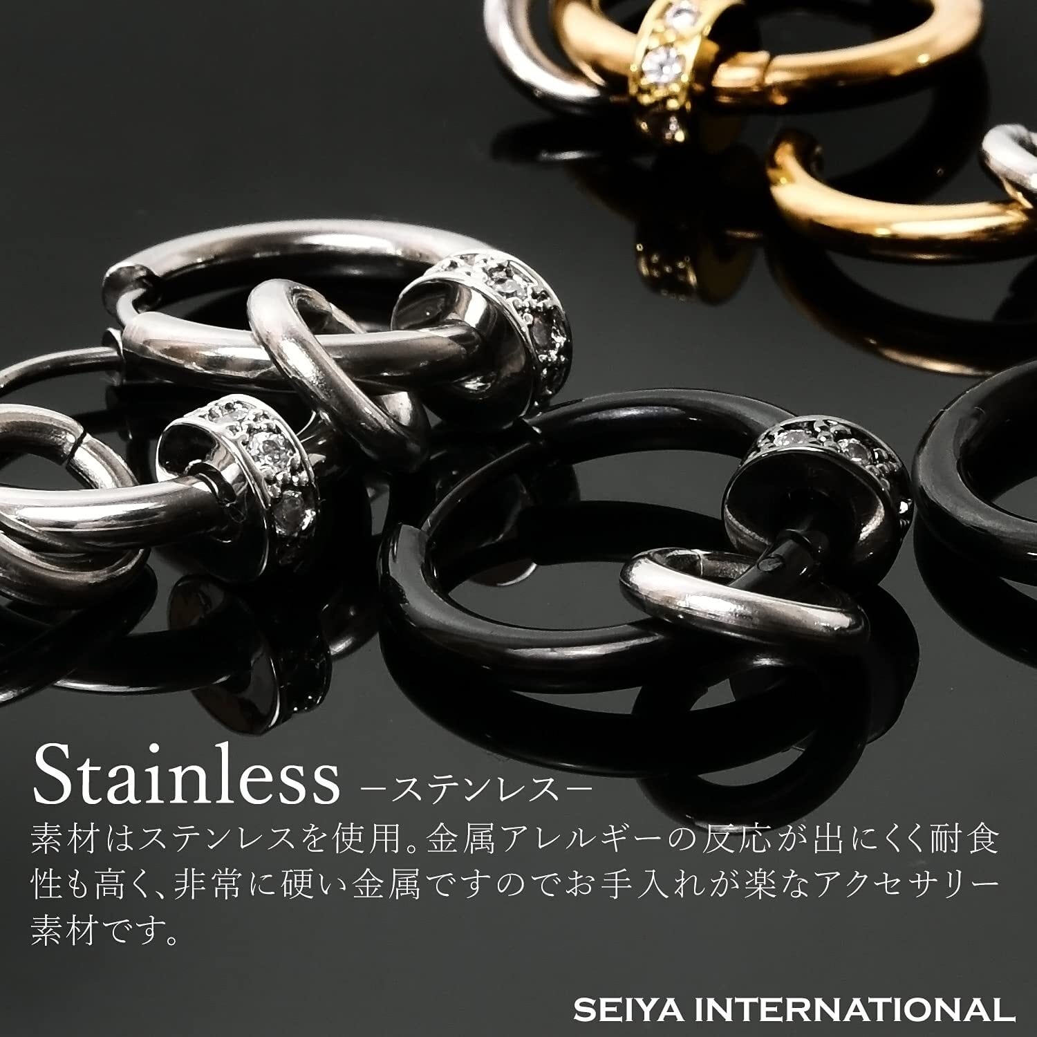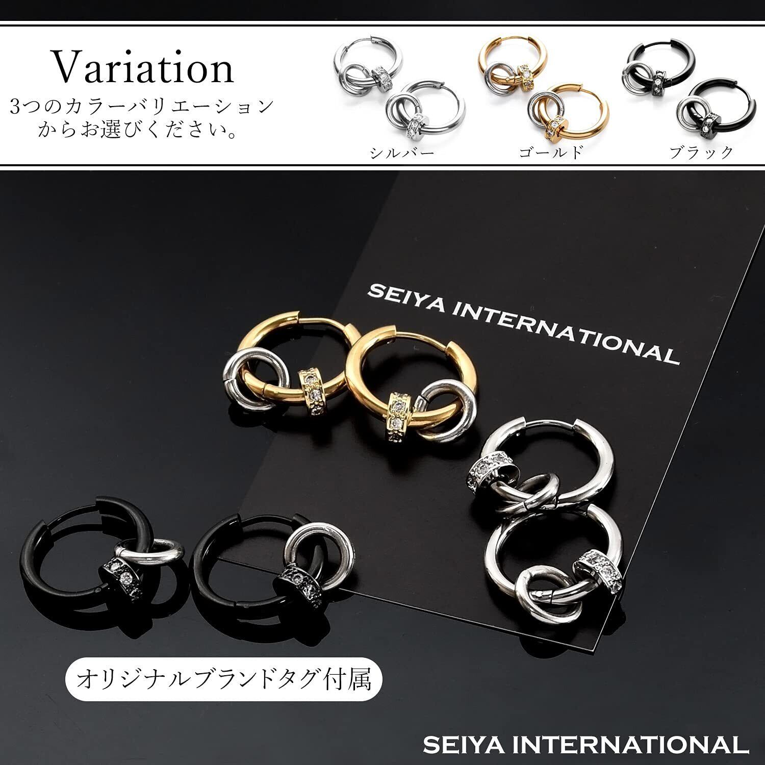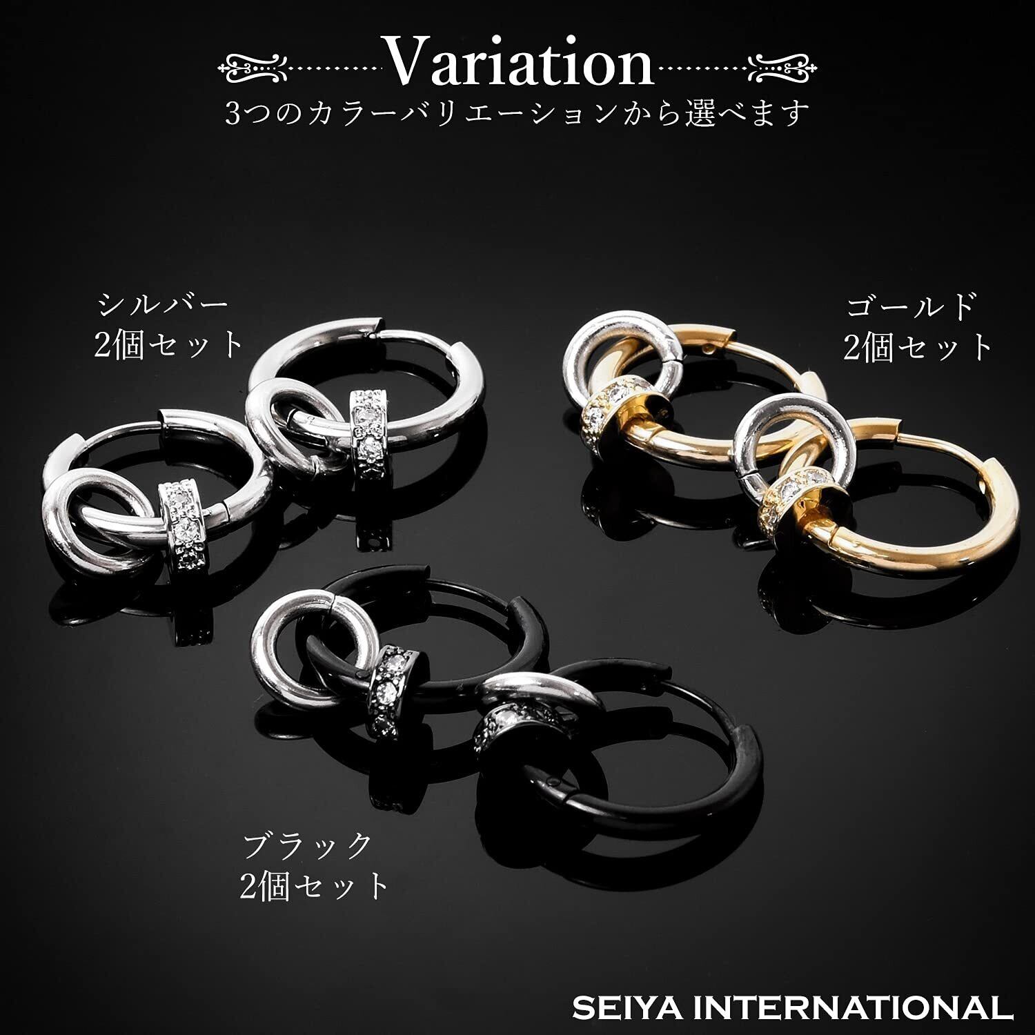 [SEIYA INTERNATIONAL] ピアス メンズ フープピアス 2連 リング リングピアス レディース 両耳 セット