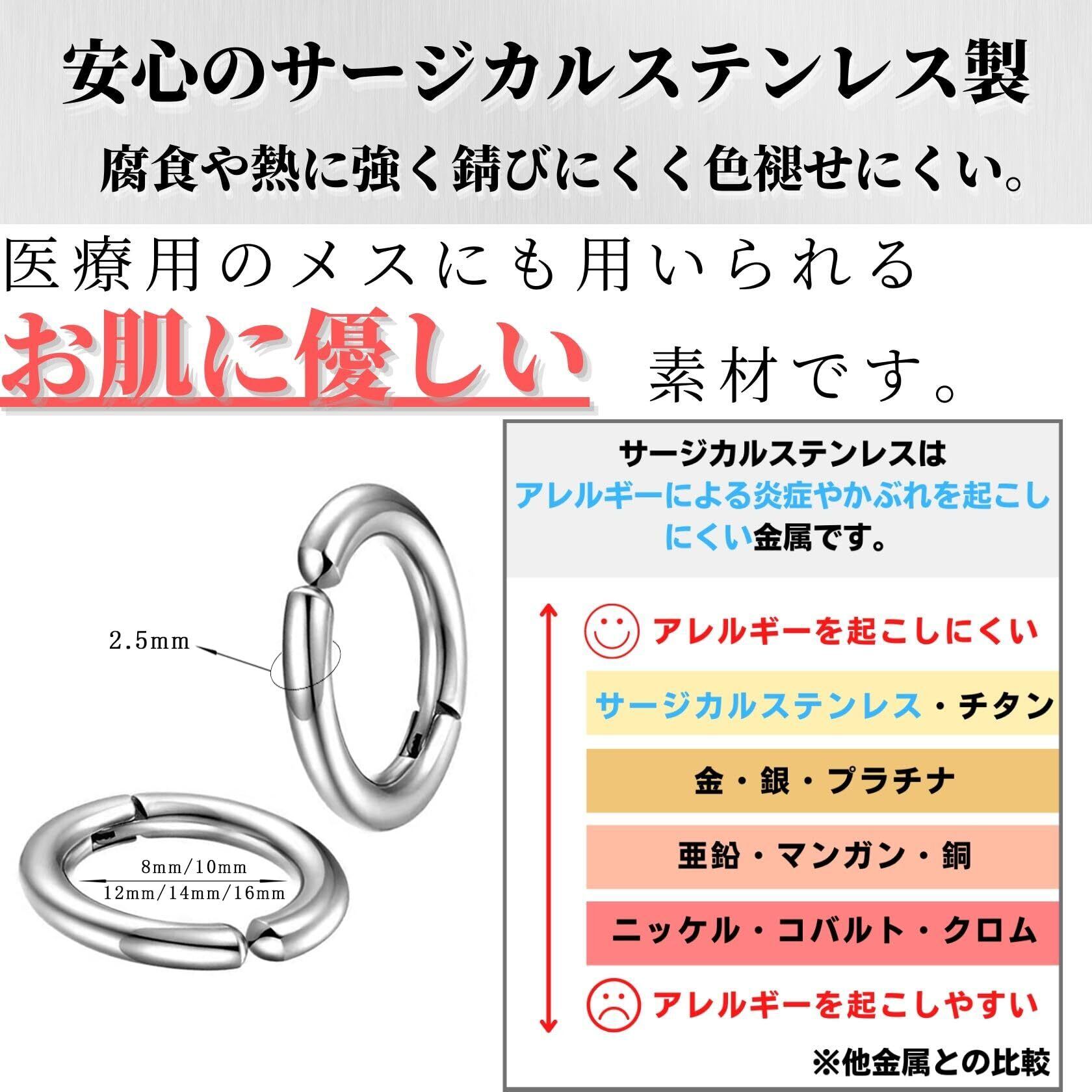 【豊富なバリエーション】カラーはシルバー、ゴールド、ブラック、サイズは内径8mm/10mm/12mm/14mm/16mm(外径13mm/15mm/17mm/19mm/21mm)の全15種類をご用意しております。スタイリッシュな印象の小さめなデザインから存在感が抜群の大きめなデザインまでお好みのデザインをお選びいただけます。※「商品の画像」より全サイズの画像がございますのでご参照くださいませ。