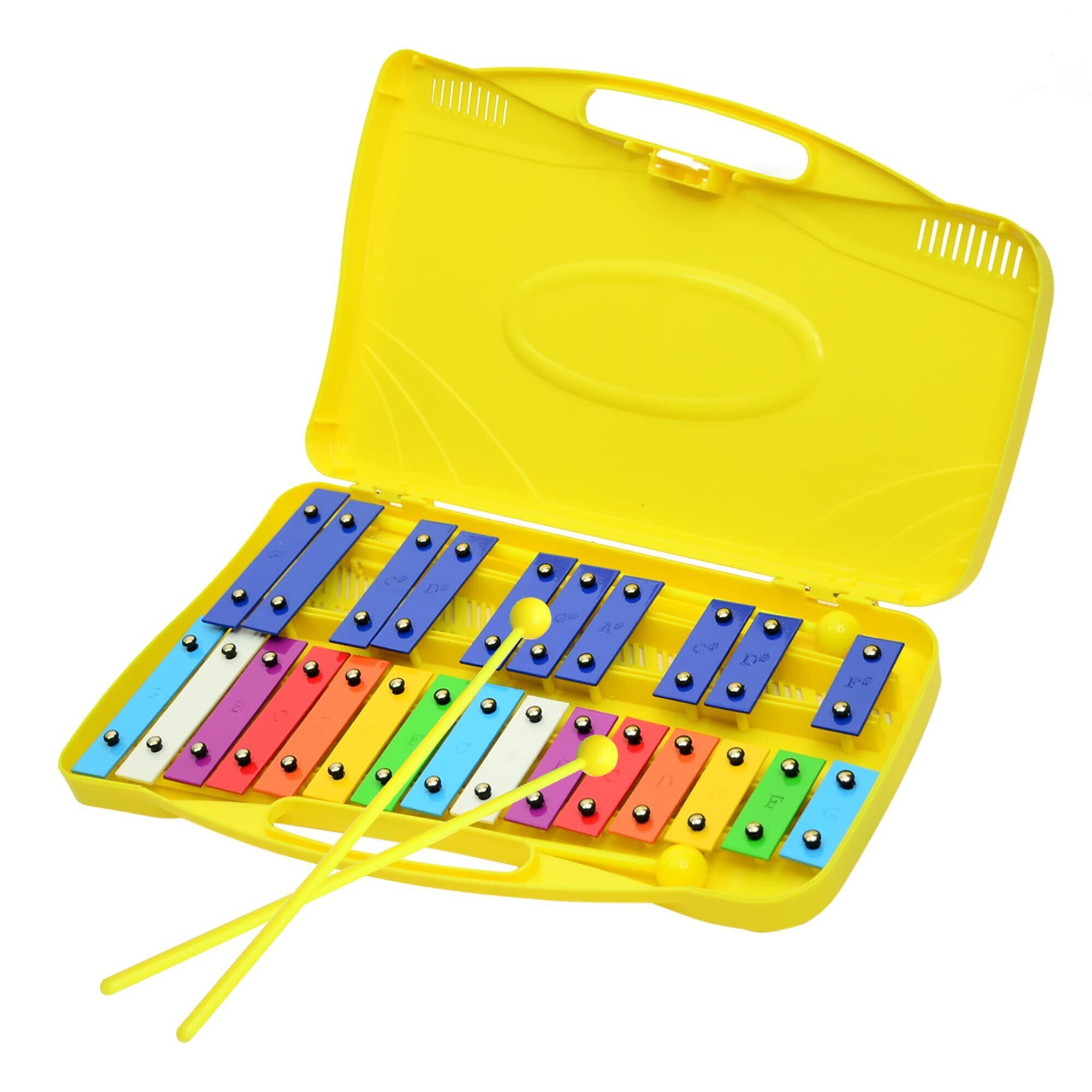 BQKOZFIN 鉄琴 カラフル 25音 オルフ楽器 卓上鉄琴 パーカッション 音楽ギフト 音楽教育ツールミュージカル教材 2マレット付き (イエロー)