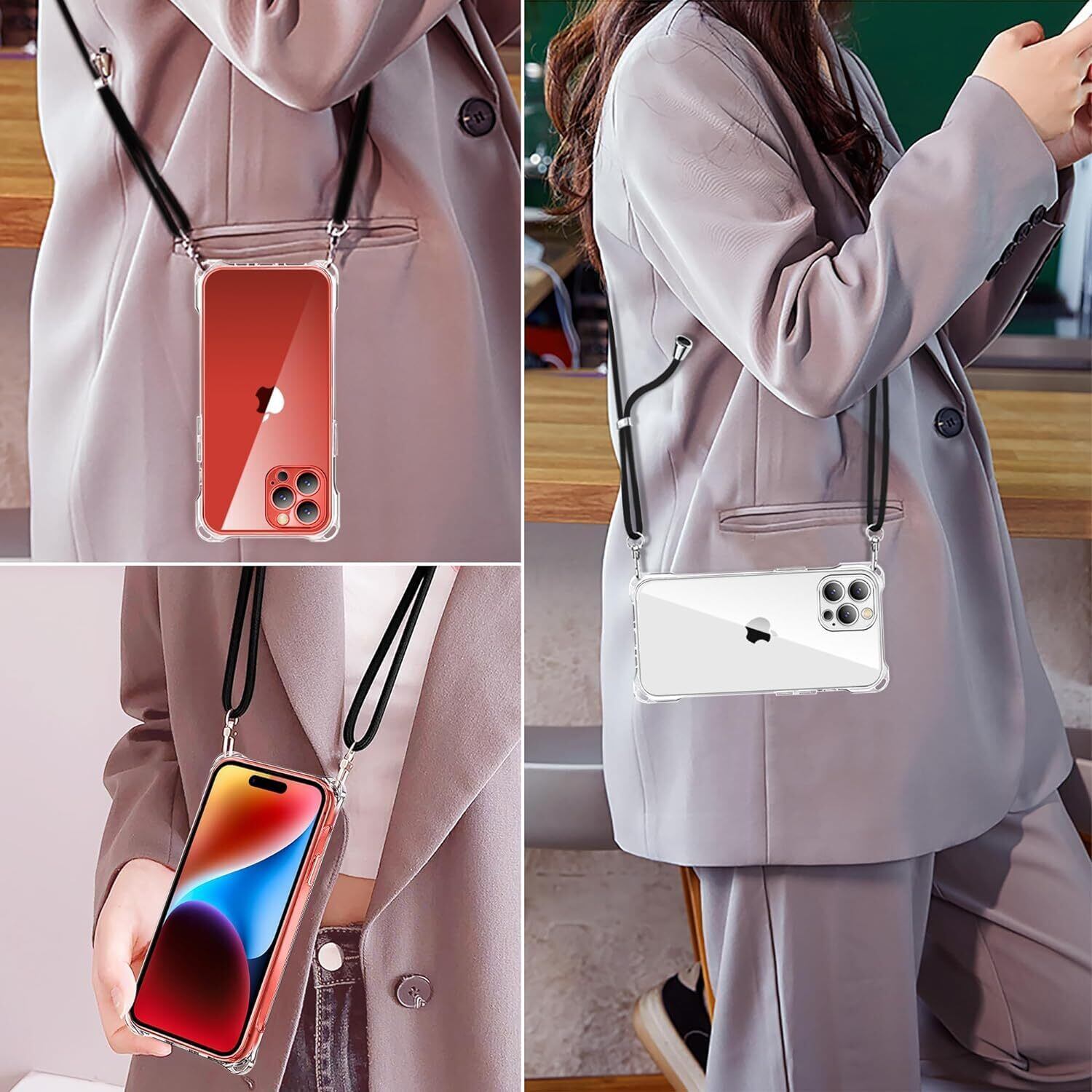 iPhone 13 Pro Max ケース クリア ネック ショルダー ストラップ付き iPhone13ProMax スマホケース iPhone13 Pro Max カバー 耐衝撃 薄型 軽量 TPUスマホ シリコン カバー 紐付き 斜めがけ 織りストラップ付き 肩掛け 縦/横 2WAY 調節可能なショルダー クロスボディ 多目的キャリー ファッションデザイン (透明)