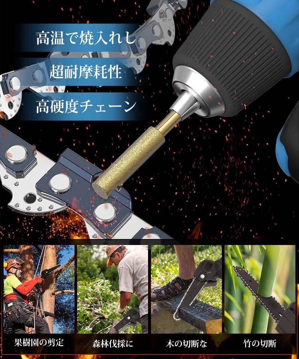 【切れ味が良い】木製の歯のデザインは、チェーンソーを枝に貼り付けて、切れ味も良くて、より効率的かつスムーズに切断することができます。高硬度のカービングチェーンは壊れにくいです。耐久性があり実用的であるため、便利で時間を節約できます。