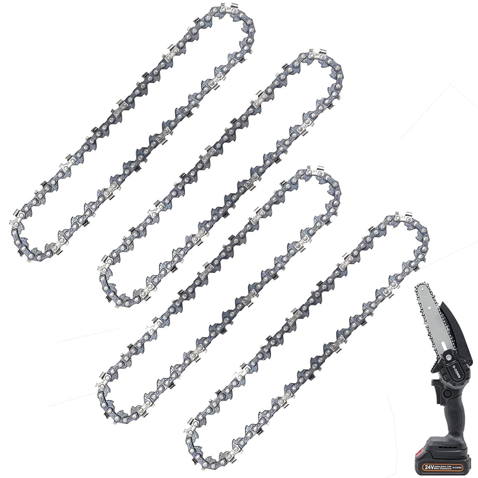 【製品仕様】サイズ:6インチチェーン、材質:65Mn、規格:37Eチェーンリンク・18Tカッター、パッケージ内容:4本入り。チェーンが2つ付いているので、予備のチェーンを残すことができて、とても便利で手頃な価格です。
