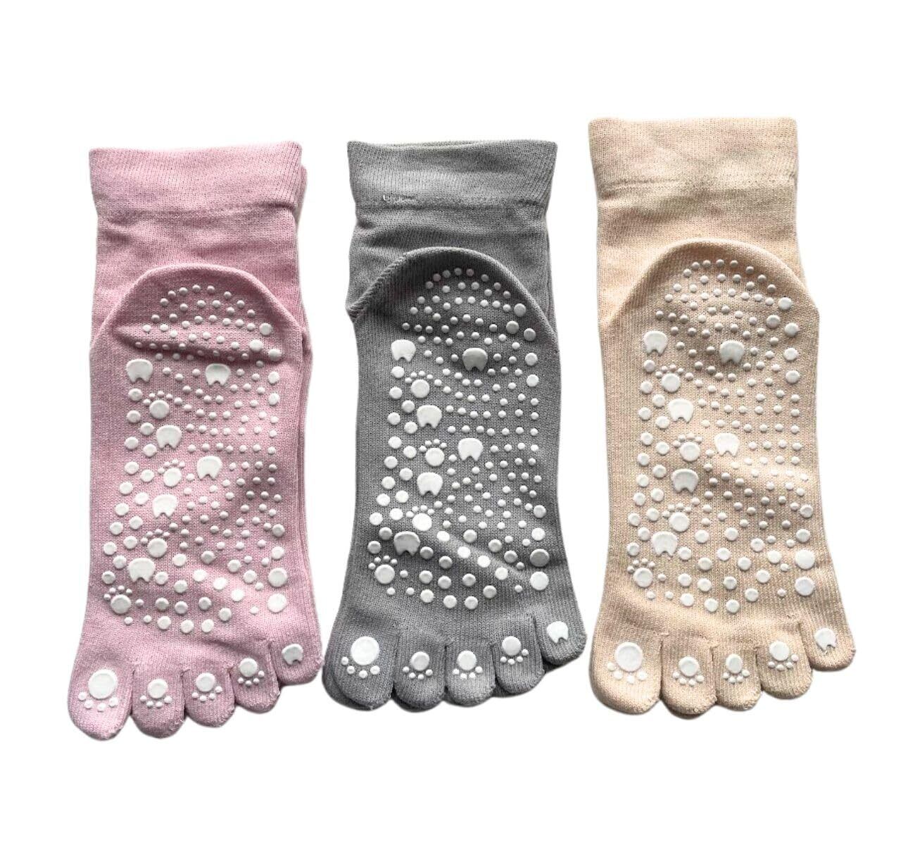 [モードセレクト] 5本指ソックス レディース 滑り止め付 3足組 足つぼ押し付き ヨガソックス スポーツ 5本指靴下 レディース すべり止め付 表糸綿100% 3足セット(色お任せ)