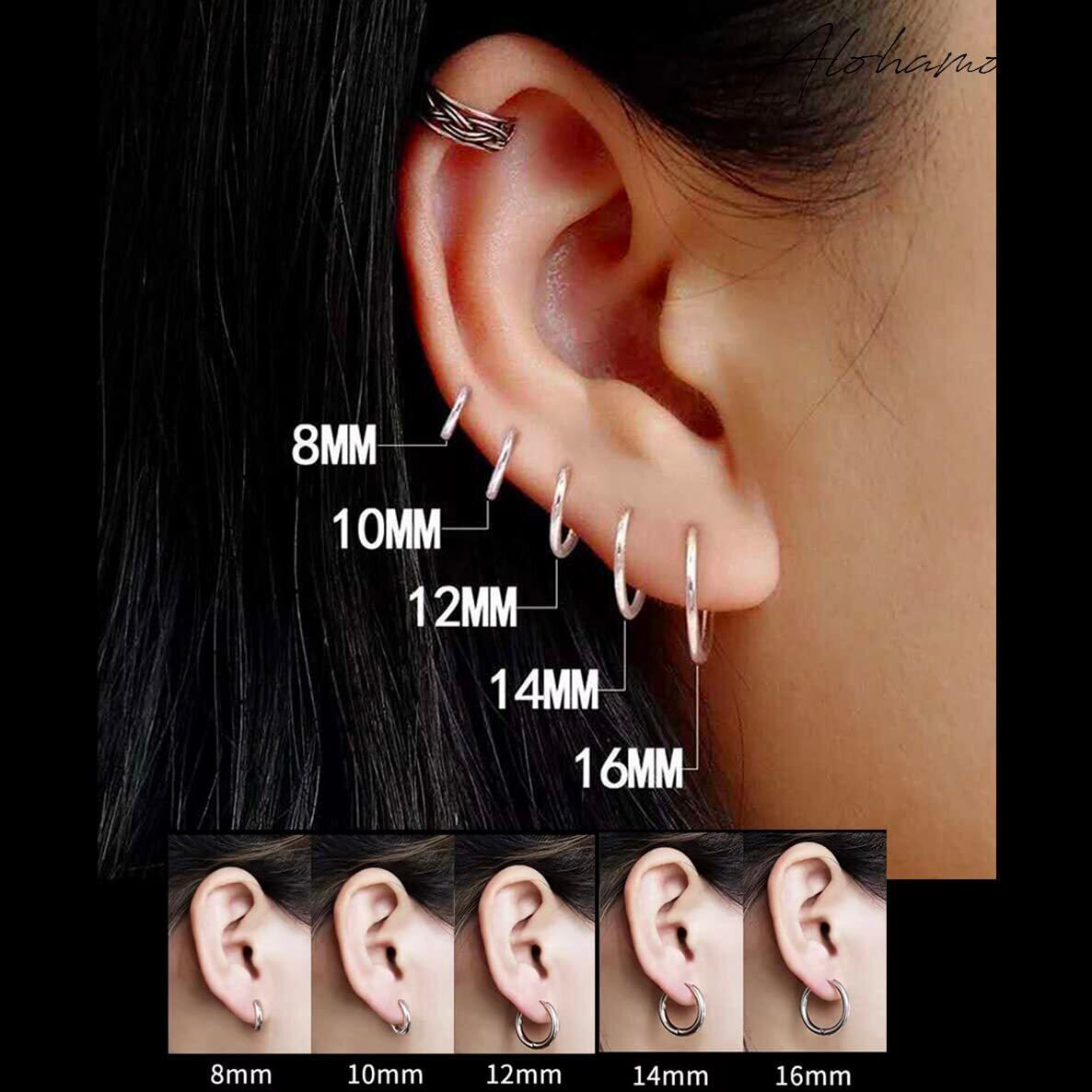[ALOHAMONI] フェイクピアス イヤーカフ イヤリング 細フープ 両耳 2個 セット フープ リング メンズ レディース メンズ ユニセックス バネ式 スプリング 挟むだけ 簡単 装着