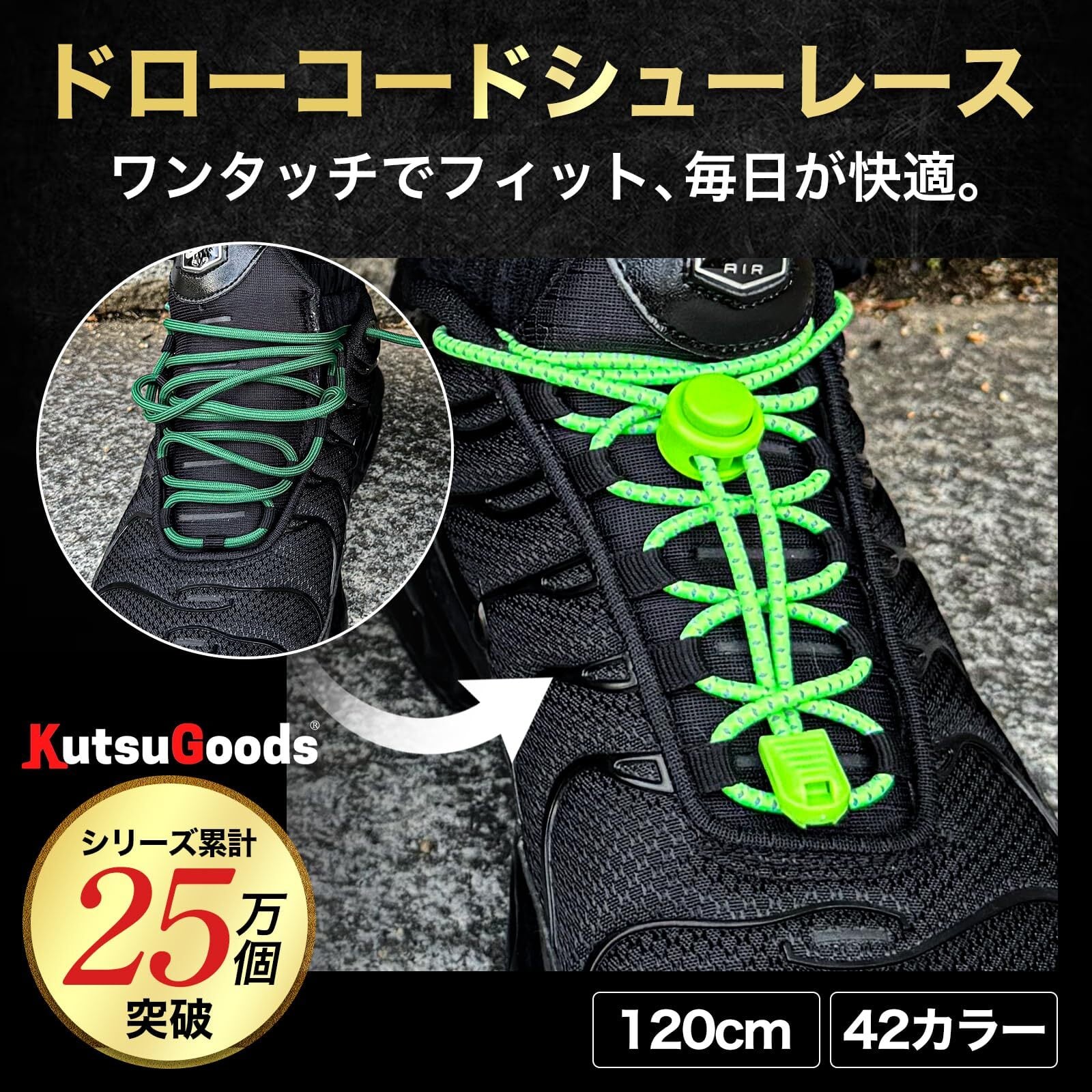 【人気商品】[KutsuGoods] クツグッズ (脱ぎ履き簡単) 結ばない 靴紐 伸びる ゴム シューレース スニーカー 留め具 ほどけない 靴ひも ドローコード 丸紐