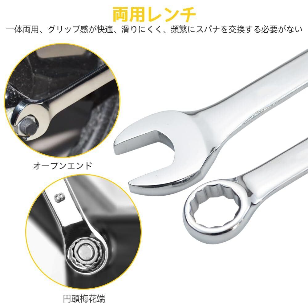 精密加工:すべてのレンチは正確に加工され、サイズが正確でバリがなく、スムーズな操作が可能です。また、各レンチは使いやすさを考慮したデザインとなっており、使用時の快適なグリップ感を提供します。