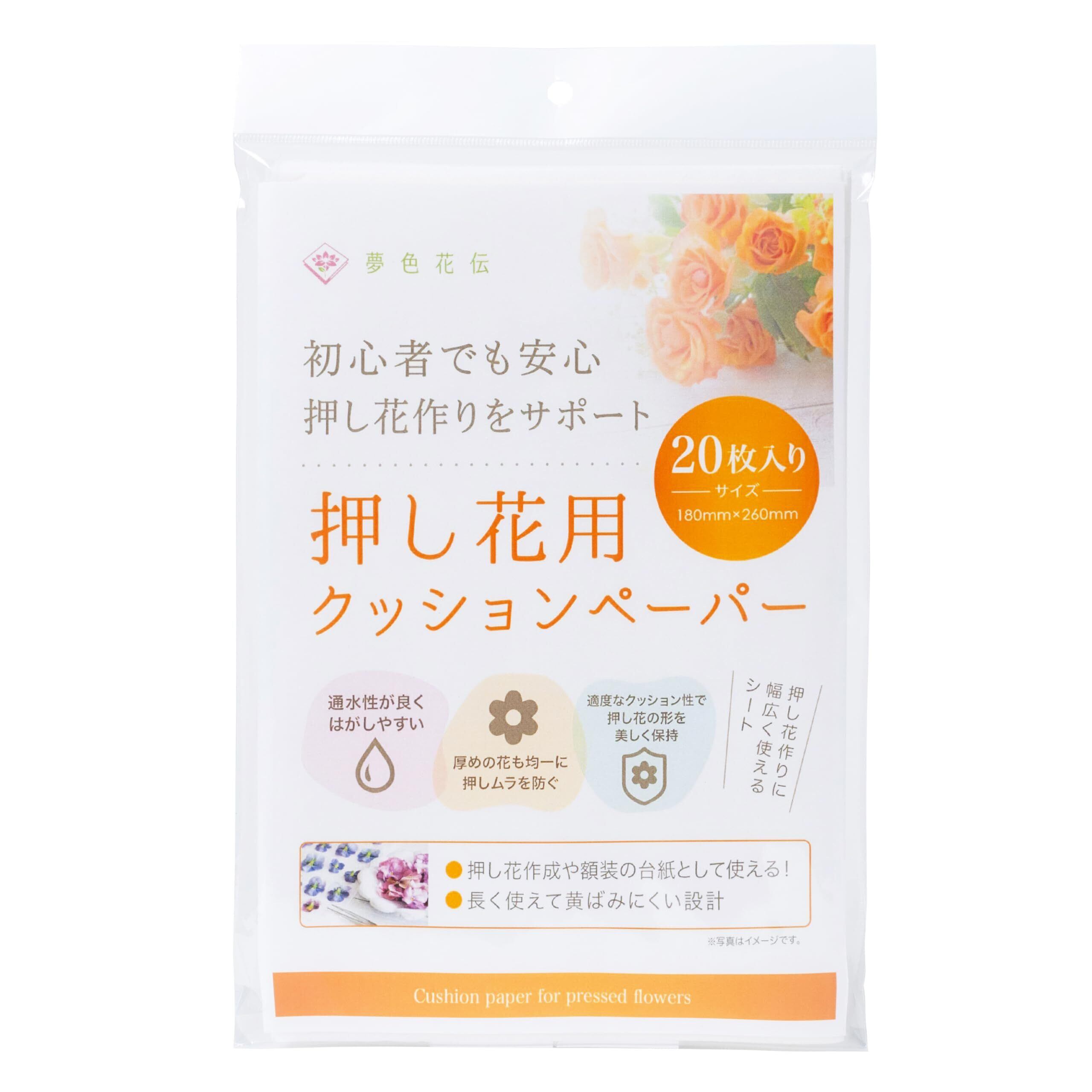 【在庫処分】夢色花伝 押し花キット 押し花 乾燥シート 【専用クッションペーパー】20枚入り クッション材 台紙 押しムラを防ぐ 植物がはがしやすい 180mm×260mm