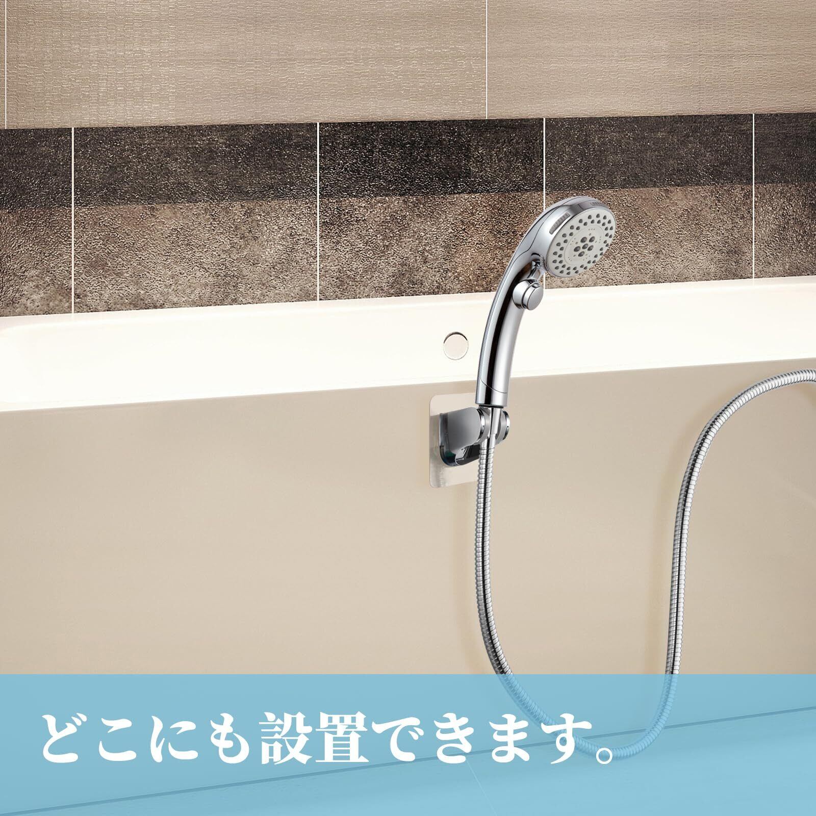 [取付簡単]お好みの位置にシャワーフックを設置できます。軽くて、女性一人でも簡単に取り付けられます。浴槽壁面などの手の届きやすい位置にも取り付けることができるので、ペットやお子様用としても楽々です。
