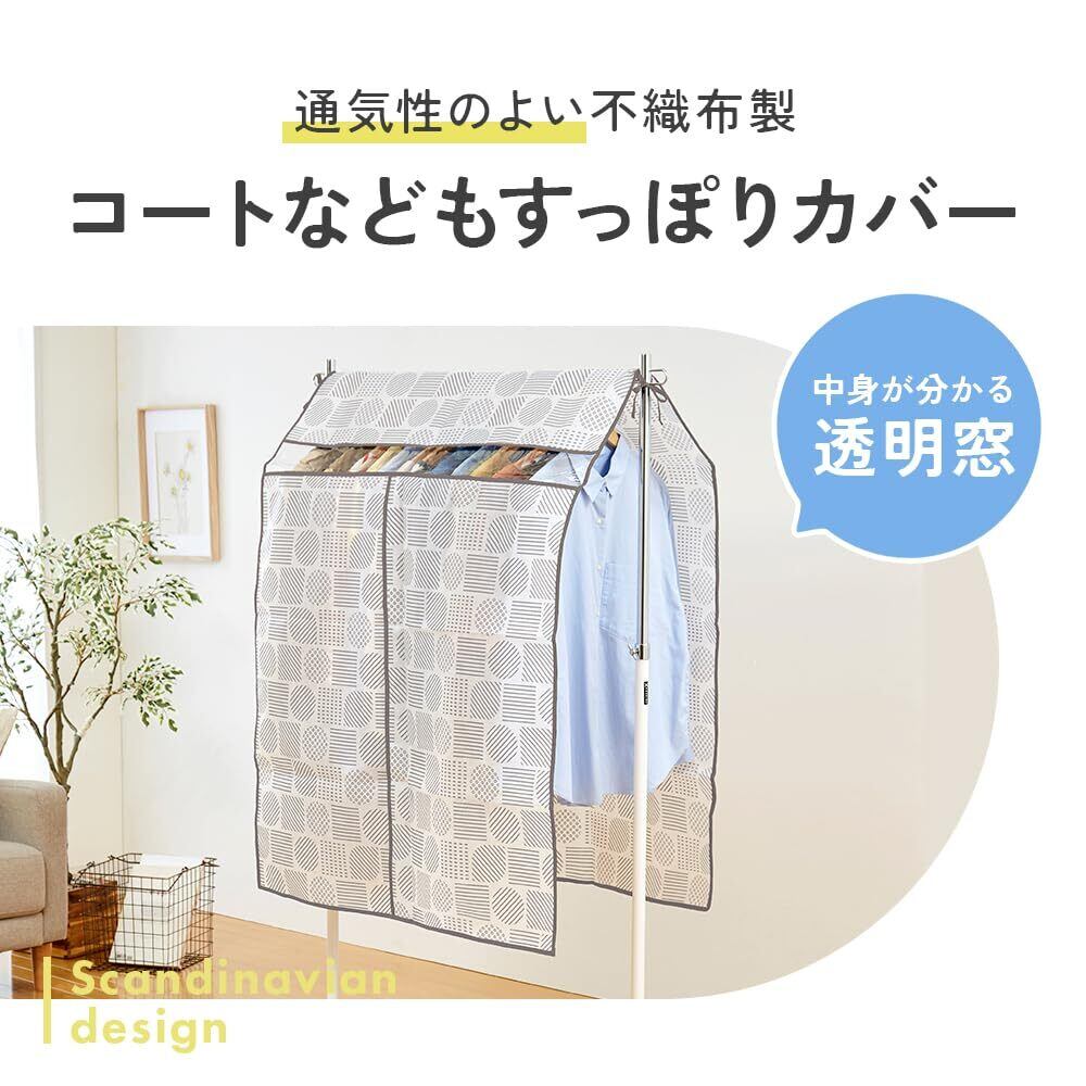 アイメディア(Aimedia) ハンガーラックカバー 衣類カバー 洋服カバー 衣類収納 ホコリよけ 収納カバー パイプハンガー カバー 衣類 洋服 収納 北欧柄 不織布 防塵 通気性 透明窓付き 固定紐 おしゃれ