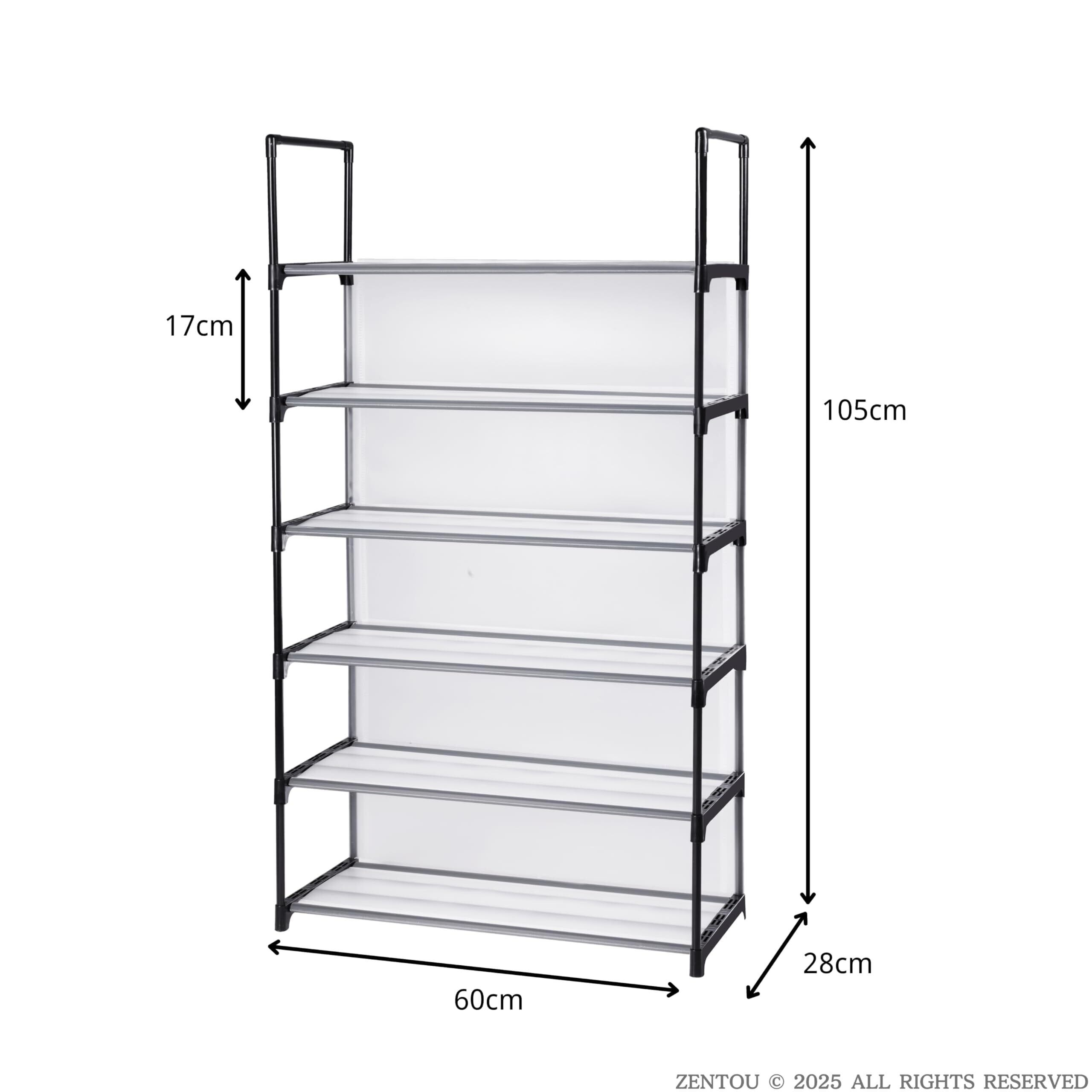 ZENTOU 6段ワイド 【新型壁&靴保護機能】 シューズラック スリム 玄関収納 大容量16~18足 靴箱 下駄箱 狭い玄関対応 省スペース 半透明PPシート付き 壁面保護 防汚 防水 組立簡単 手袋付き 幅60×奥行28×高さ105cm ブラック