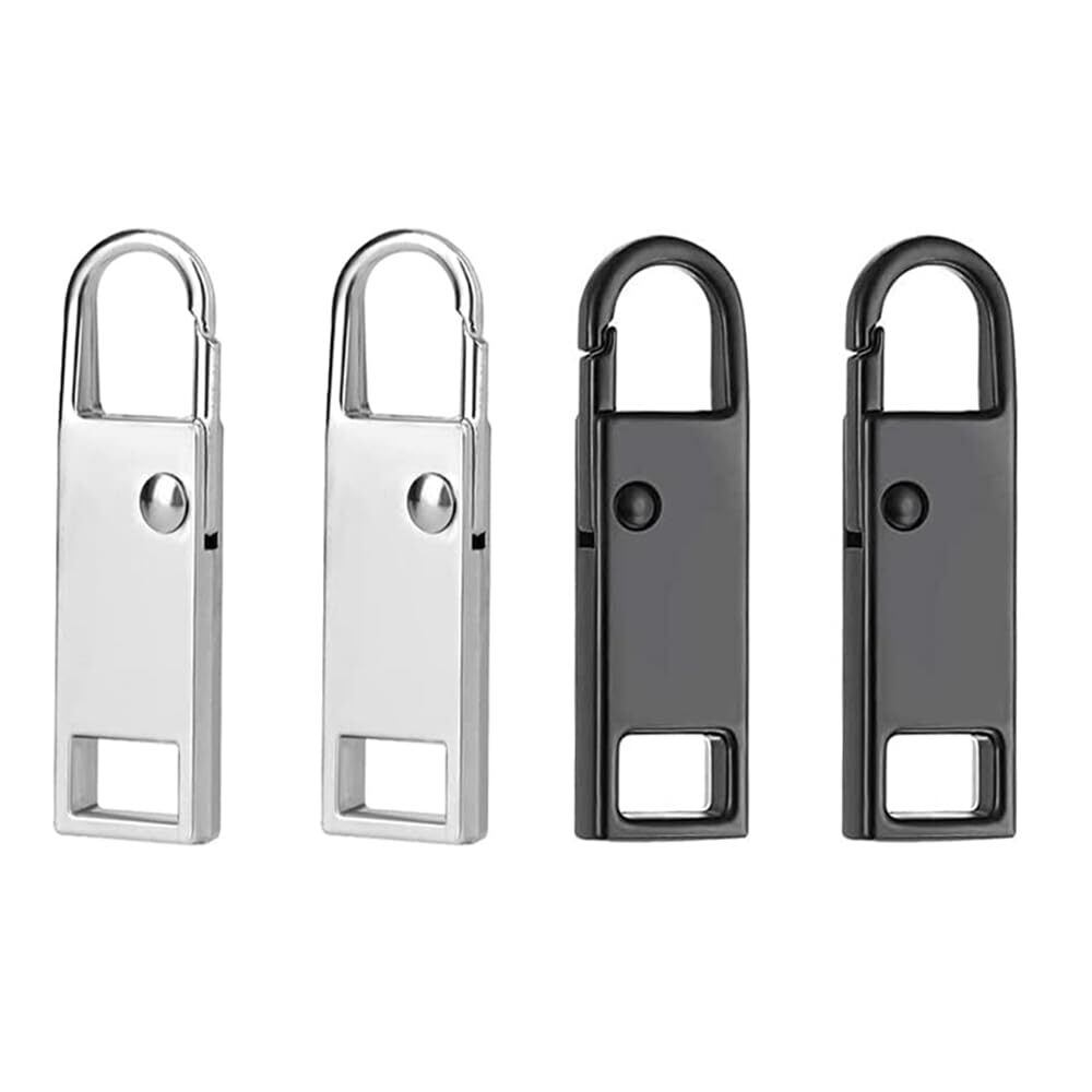 ファスナー 引き手 チャック 取っ手 交換用 4個入り 金属製 簡単に取り付 カバン/財布/衣類/靴 ファスナー修理 交換用 (ブラック、シルバー)