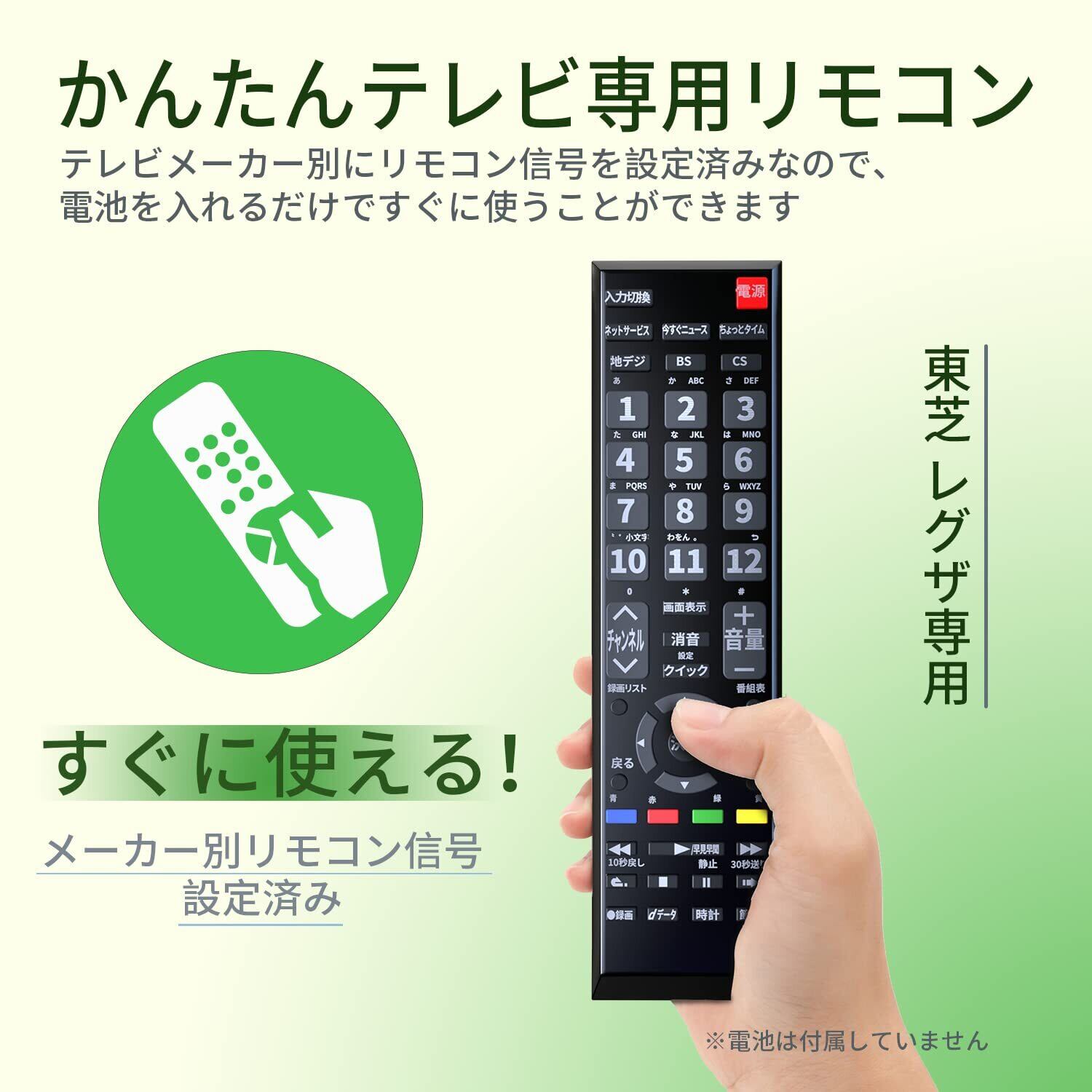 【かんたん】東芝 製テレビ レグザに設定済みで、登録作業をすることなくそのまま使えるかんたんTV用リモコンです。※新品電池と使用済み電池の混用しないでください。同品種、同一品番(使用期限)の電池をご使用下さい。(※機種によっては一部の機能が操作できない場合があります。)