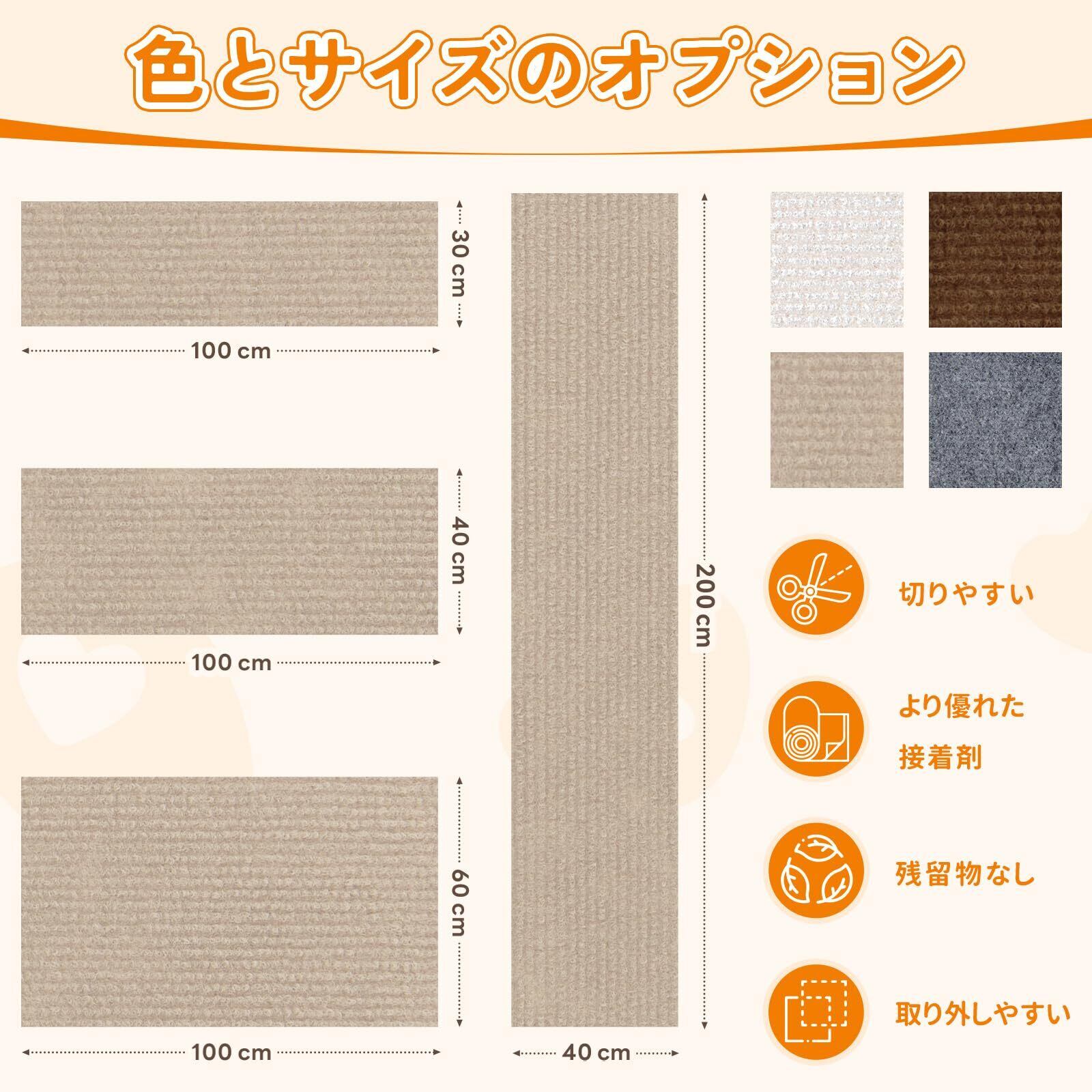 ??【簡単剥離&取付簡単】:猫つめとぎシートは、自己粘着式の裏面を持ち、取り付けが非常に簡単です。裏面の保護膜を剥がし、床や家具の表面に貼り付けるだけで、素早く取り付けができます。このシンプルな取り付けは飼い主にとって手間がかからず、猫にいつでも使える環境を提供します。また、爪研ぎシート 壁は取り外し可能で再利用できるため、角から剥がすことで簡単に全体を取り外せます。ヒント:取り付ける表面を清掃し、汚れや埃がないことを確認してください。壁に貼り付ける必要がある場合は、タイル壁や木の壁をお勧めします。灰泥壁に貼り付けないでください。取り外す際に壁が損傷する可能性があります。貼り付けた場所の角では、カットして個別に貼り付ける必要があります。剥がすときに水を少し加えると接着剤が取れるので、剥がして貼り直すのが早くなります。