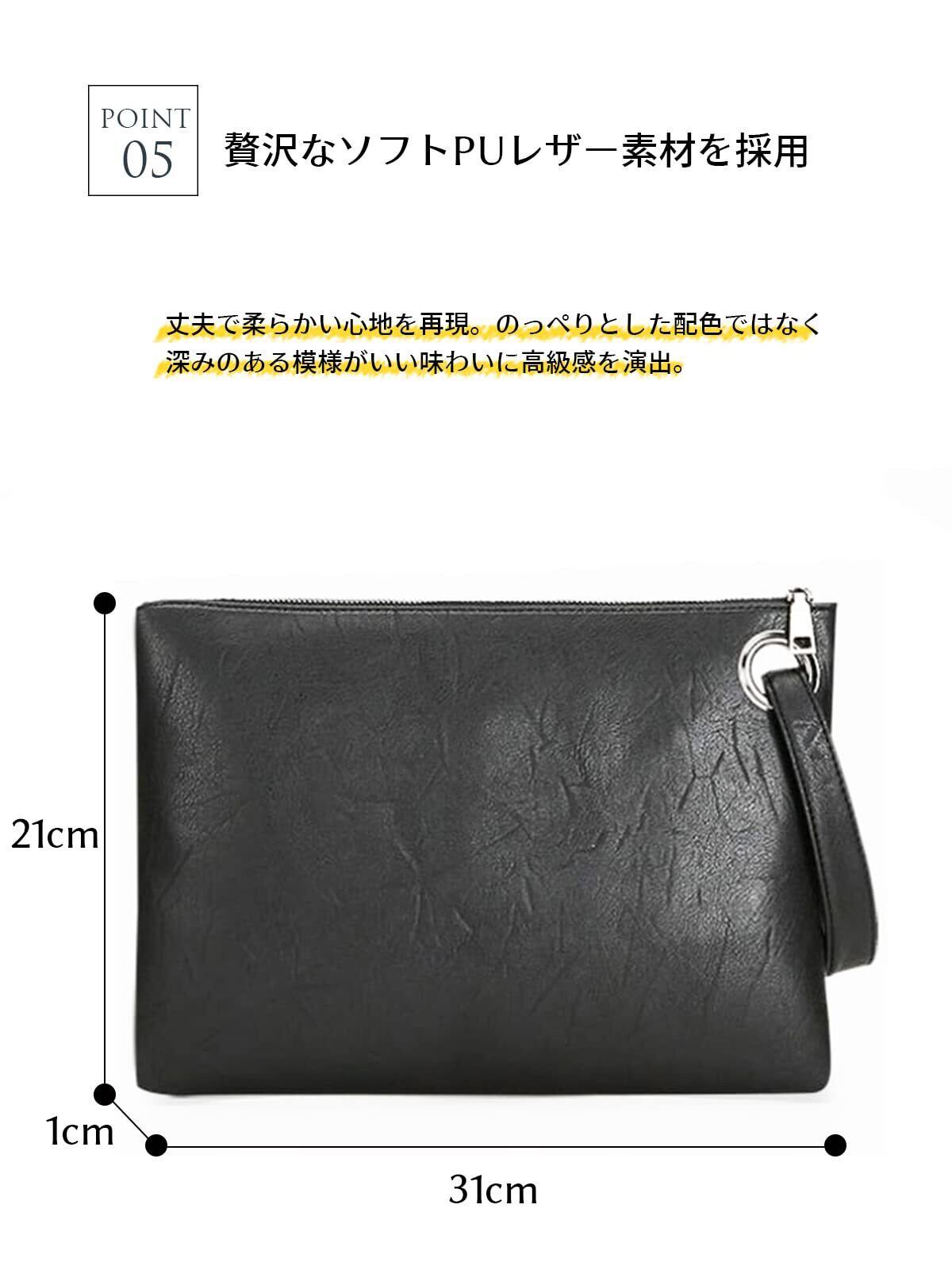 【素材】贅沢なソフトPUレザー素材を採用、日常のセカンドバッグとして丈夫で柔らかい心地を再現。のっぺりとした配色ではなく深みのある模様がいい味わいのクラッチバック
