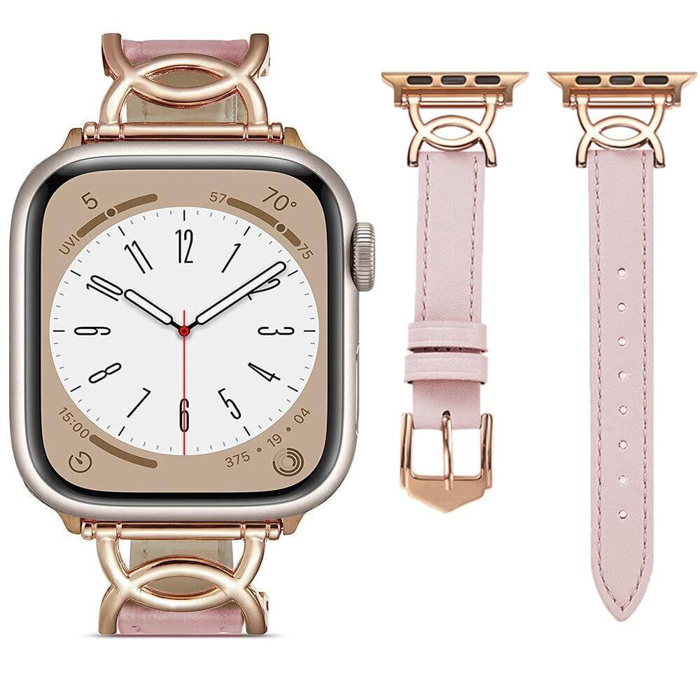 Youmai コンパチブル Apple Watch バンド 本革 レディース Apple watch Ultra2/Ultra/ Series10/9/ 8/7/6/5/4/3/2/1/SE レザー交換ベルト 柔らかい おしゃれ 可愛い アップルウォッチ バンド 女性専用 38mm 40mm 41mm 42mm 44mm 45mm 46mm 49mmに対応 (ピンク、46/45/44/42mm(series3の42mm))