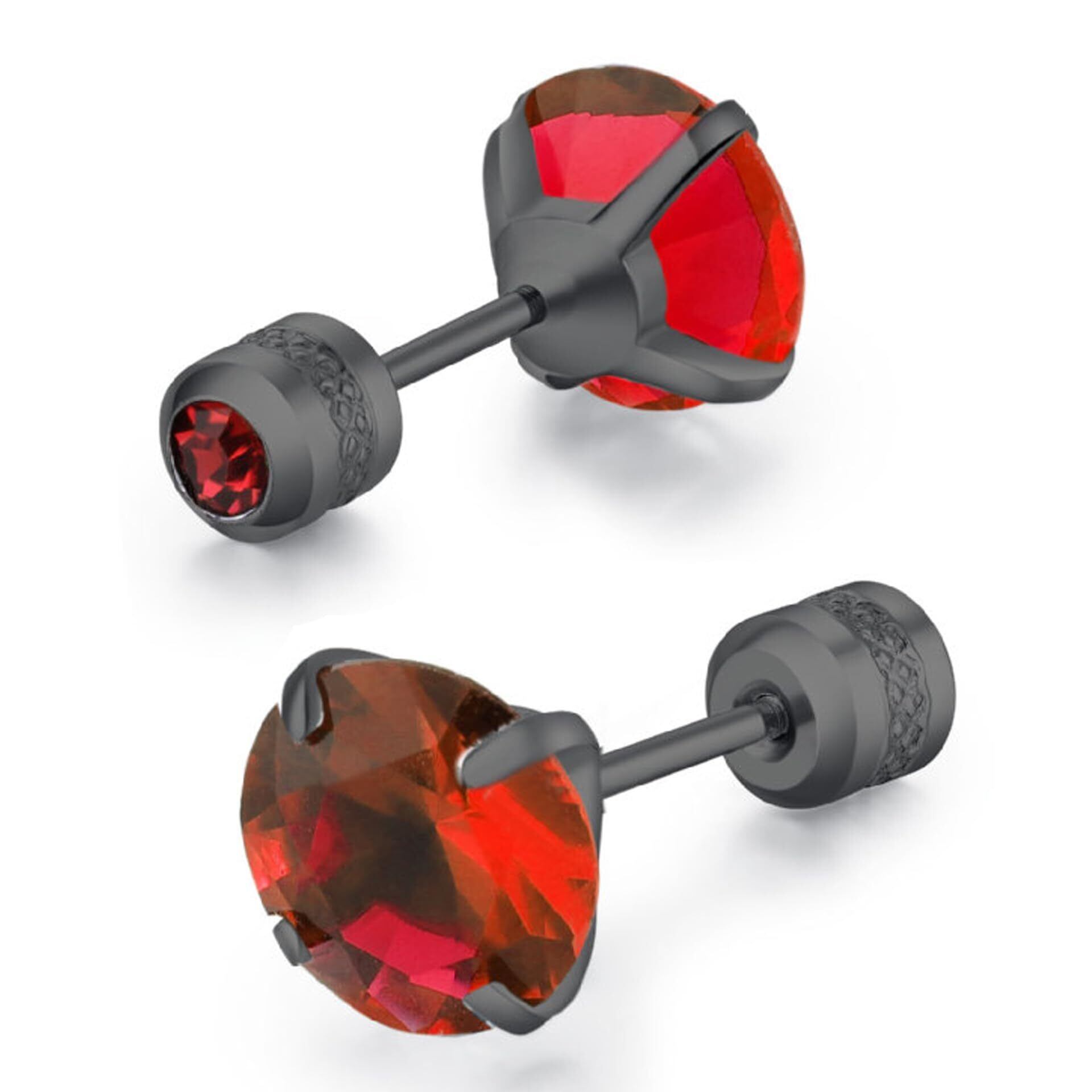 ??【ピアス】両耳用 材質:チタンステンレス 石:直径5mm キャッチの色:ブラック 石の色:レッド 2個セット(1ペア)