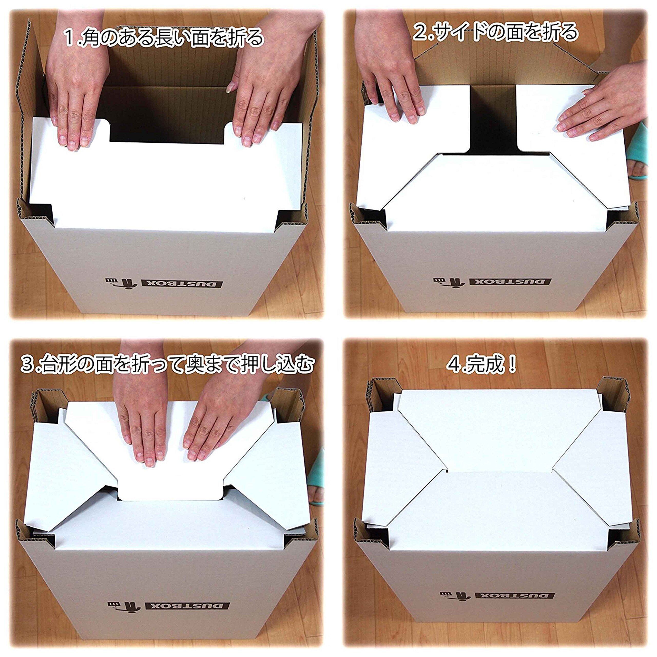 でしか買えない【限定】オシャレな ダンボール ゴミ箱。白地に黒の DUSTBOX とかわいいアイコンがプリント。パット見はダンボールに見えないオシャレさがGOOD。並べて分別。ペットボトル、空缶入れ専用ゴミ箱などとして活躍。 専用 分別シールもあり、用途に合わせて分別