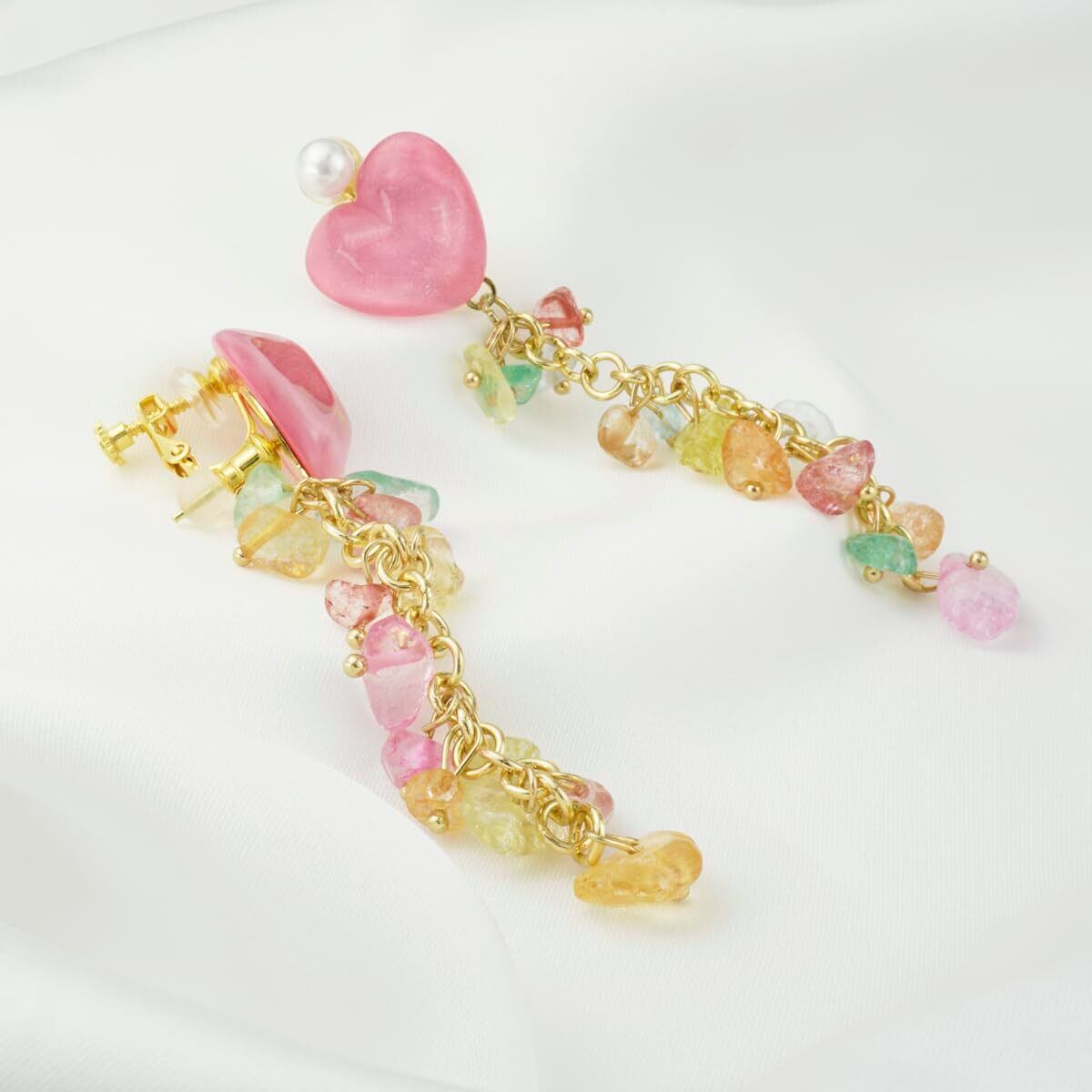 使い方はとても簡単で、ピアスを差し込み、キャッチ(透明の樹脂タイプが目立ちにくくオススメです)をつけるだけで、手軽にネジ式のイヤリングへ変身させちゃういます。ピアスホールがあいていない方におススメです。ネジバネ式のイヤリングは耳たぶの厚さにあわせてサイズ調整ができます。
