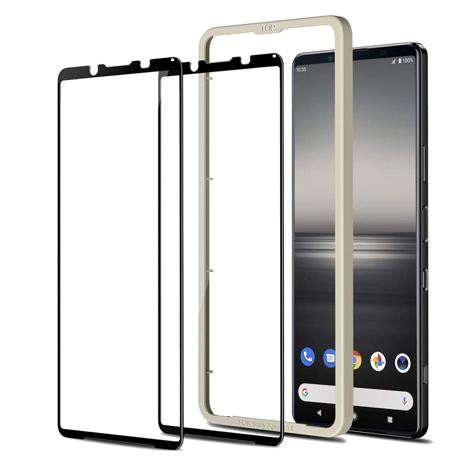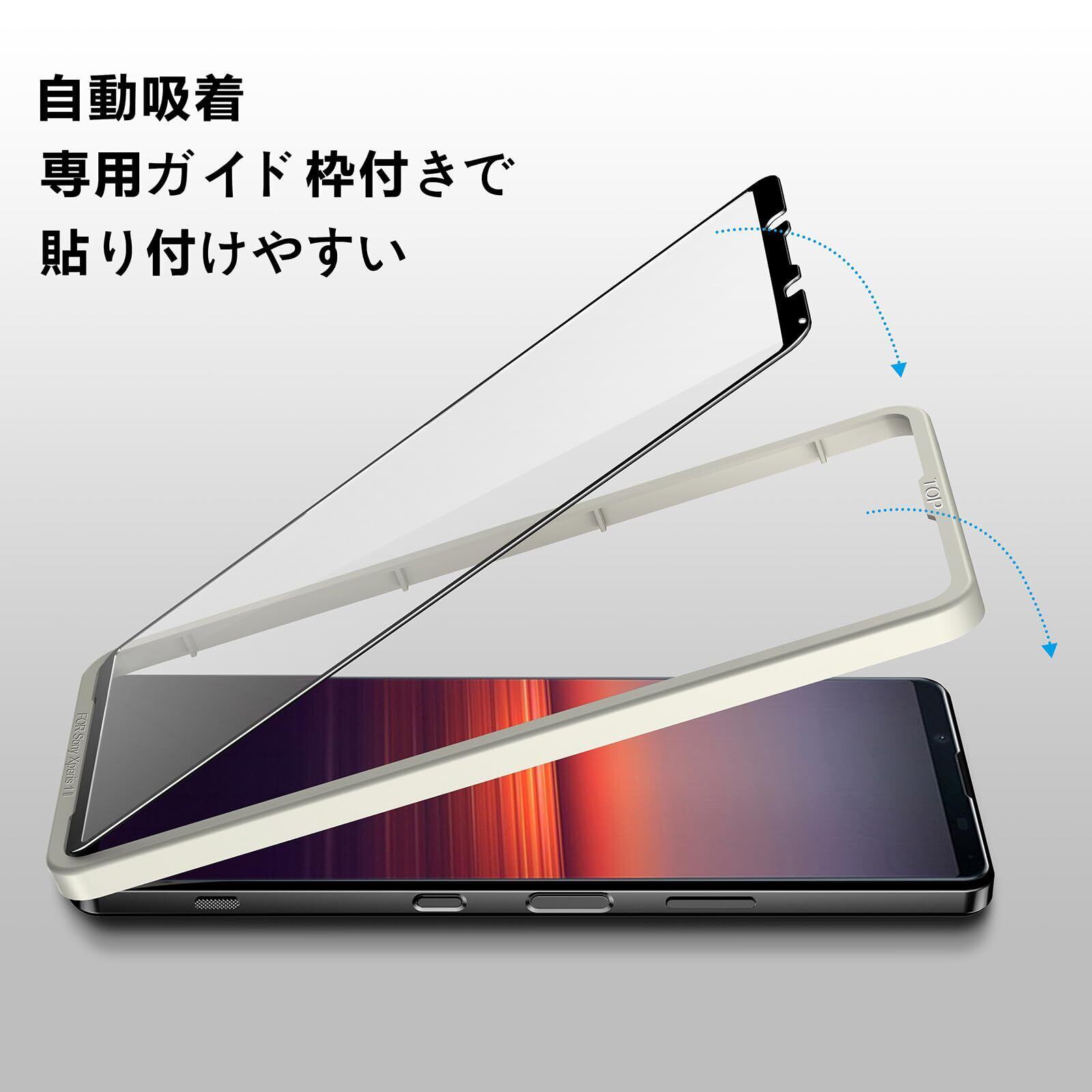 【全面保護】Xperia 1 II 用 ガラスフィルム 2枚入 硬度9H 耐衝撃 強化ガラス 日本旭硝子素材製 ガイド枠付き 貼り付けが簡 ソニーエクスペリア 1 II専用 液晶 保護 フィルム SOG01 SO-51A 対応
