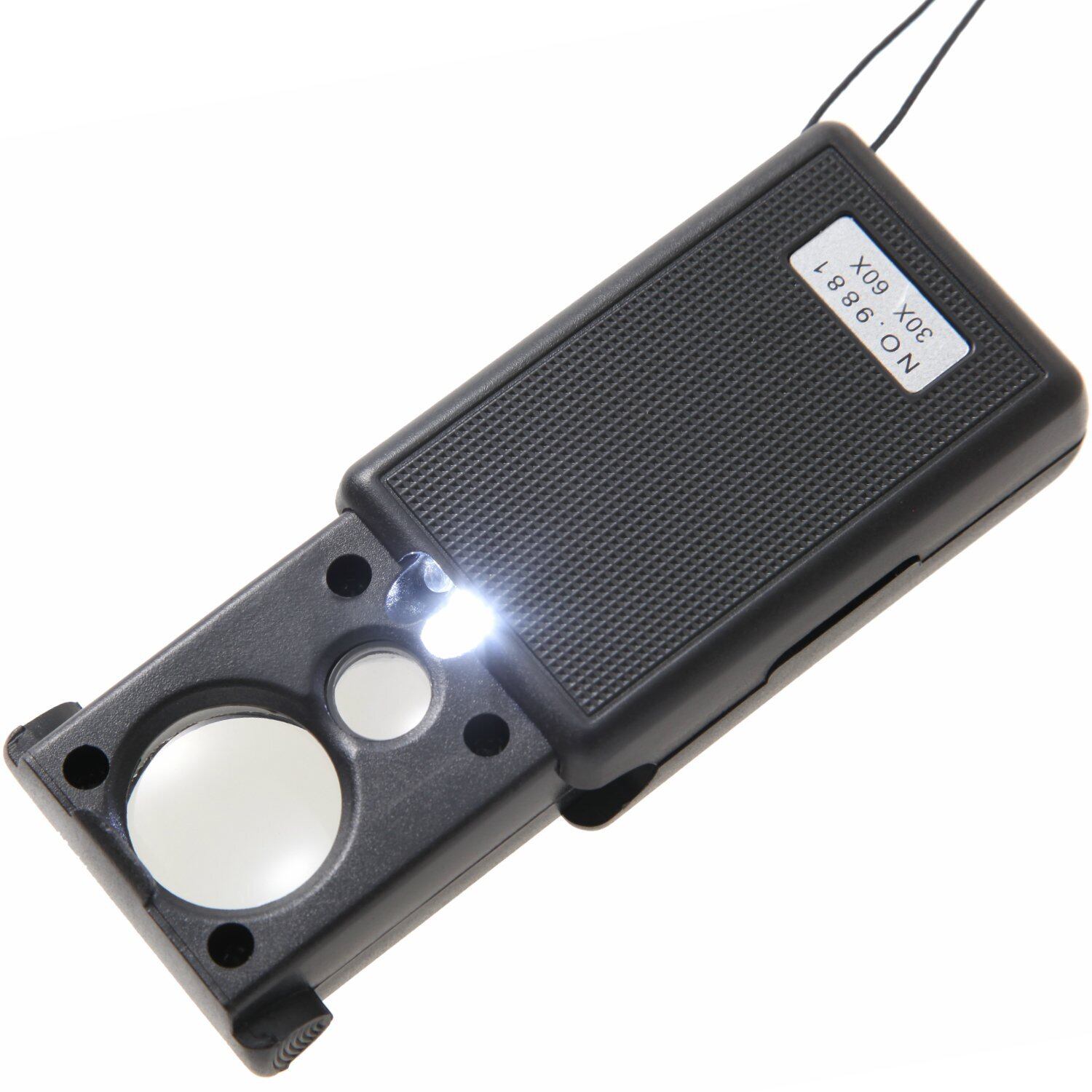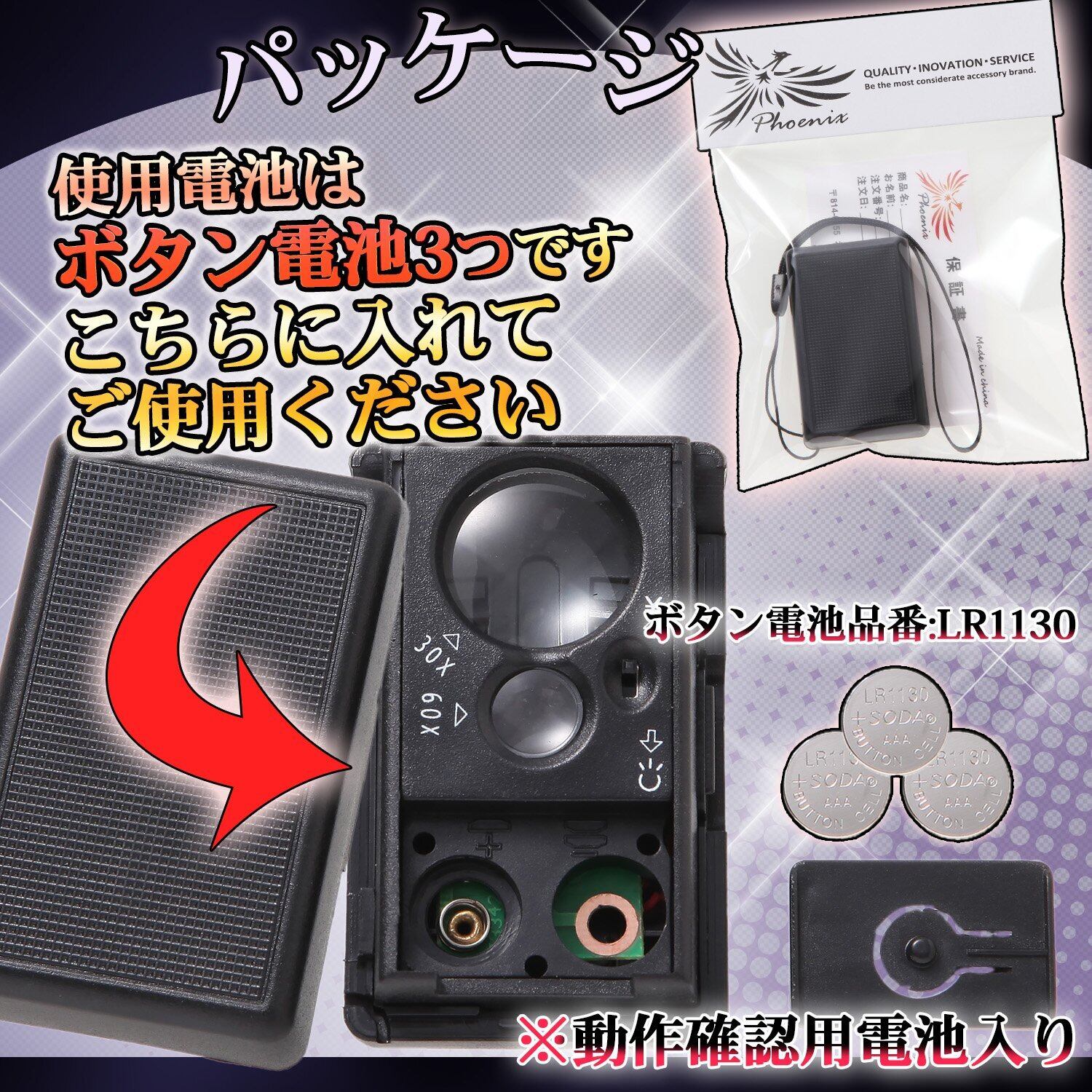 Phoenix 精密作業用 携帯ルーペ【30倍&60倍】2種類レンズ/LEDライト・ブラックライト/ストラップ付き<長期45日間>拡大鏡 ルーペ