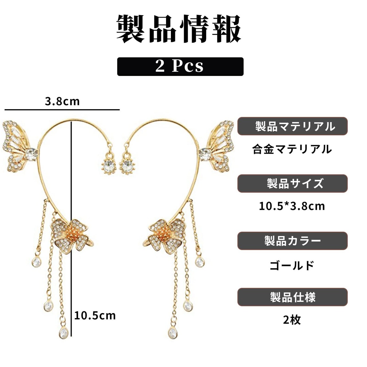 【高品質素材】蝶の花のイヤリングは、高品質の合金ラインストーンで作られています。耳を外気から完全に保護し、金メッキで錆びない。カフの幅を絞ったり、背面のイヤーピースを調節することで、緩やかに調整することができます。