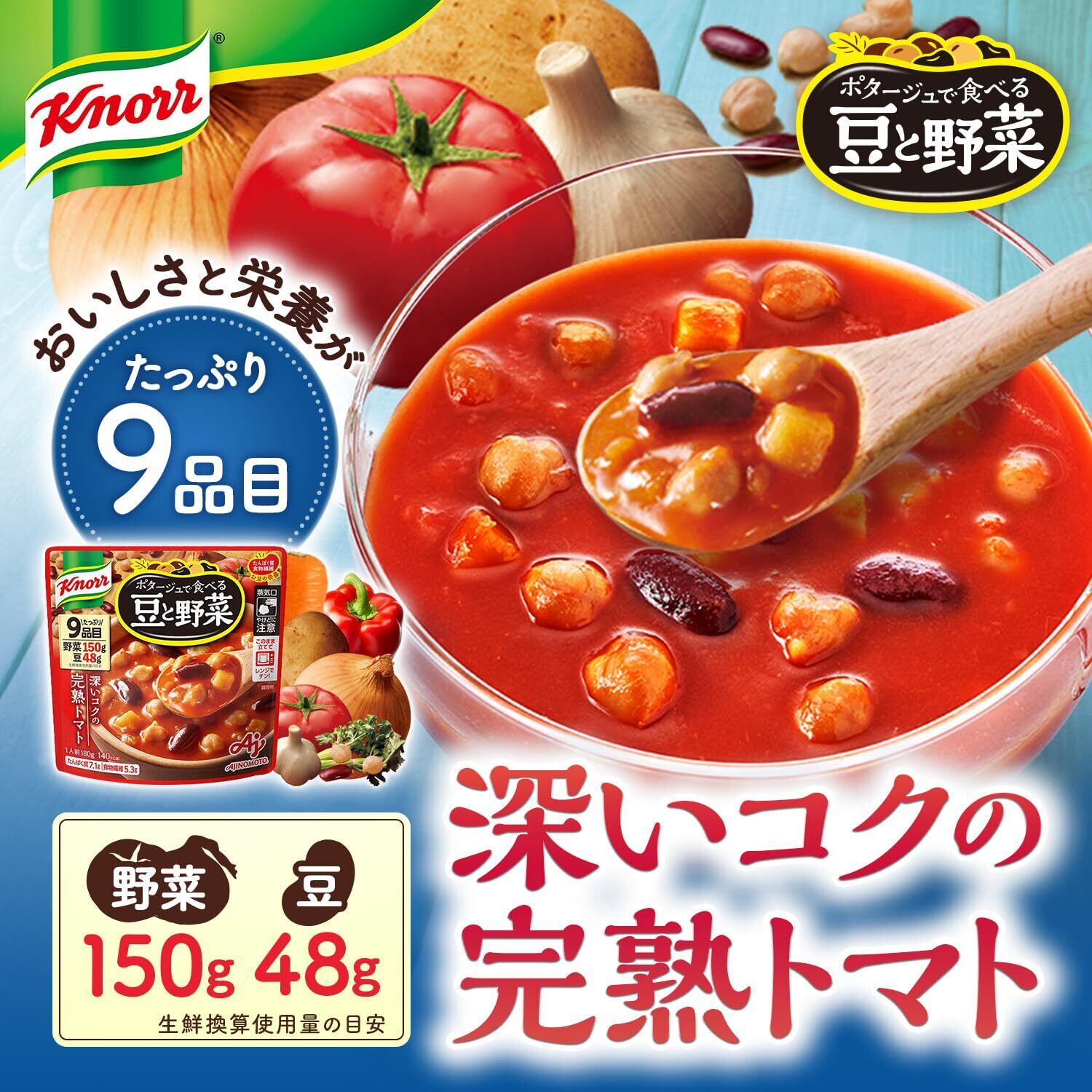 【人気商品】クノール ポタージュで食べる豆と野菜 深いコクの完熟トマト 180g ×7個 味の素 レンジ調理対応 レトルト 野菜スープ たんぱく質 温製 冷製