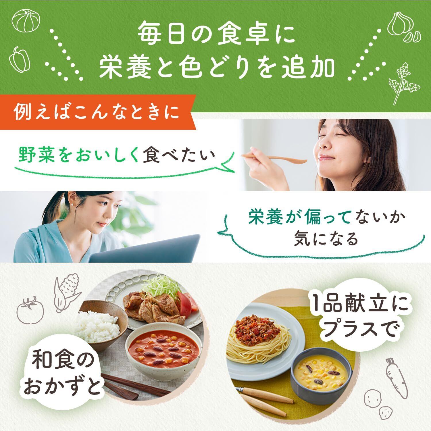 カラダ作りに大切なたっぷりの豆と野菜を、素材のおいしさが溶け込んだスープで食べる彩り豊かなおかずポタージュです。