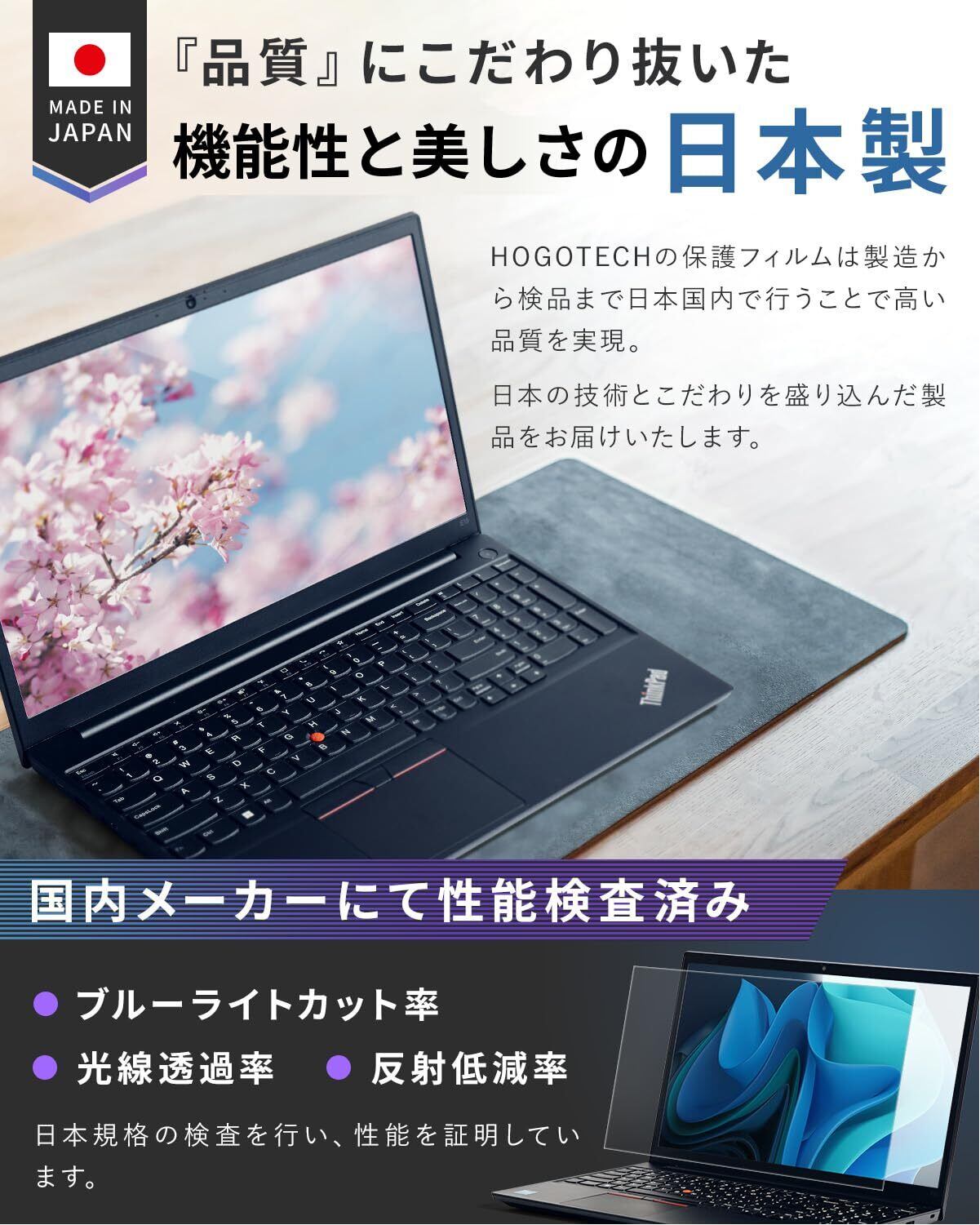 ?日本製 保護フィルム ブルーライトカット アンチグレア 反射防止タイプ:反射低減率90% 光線透過率90%