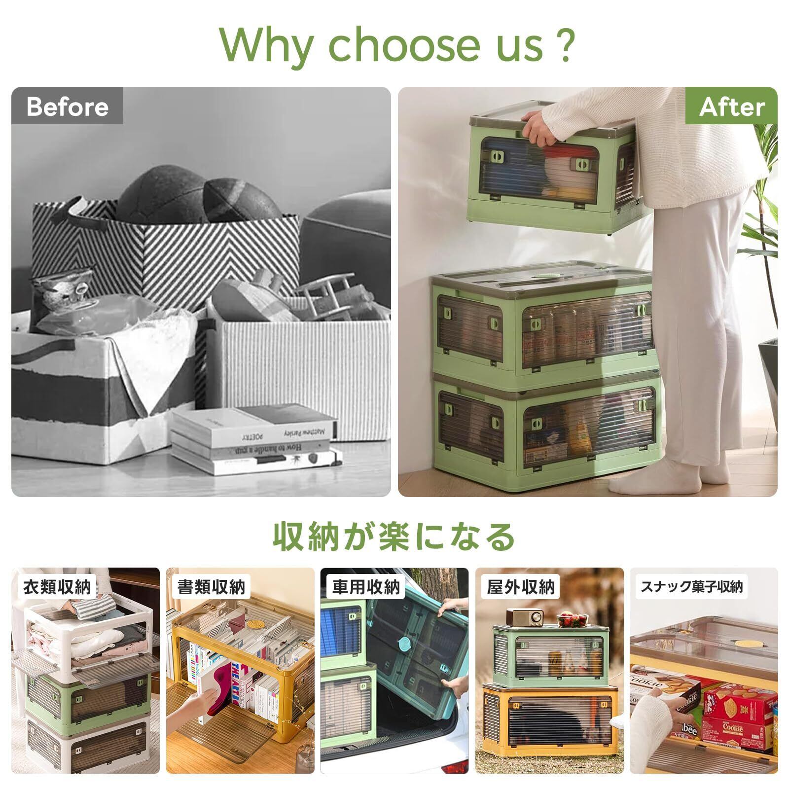Freely 多機能折りたたみ収納ボックス 積み重ね可能 蓋付き 大容量 キャスター付き 防塵防湿防虫 ABS樹脂 家庭用/車載/アウトドア対応 5面開閉式 簡単組み立て 衣類・布団・本・食品収納 XL(60×42×33.5) cm84.5L