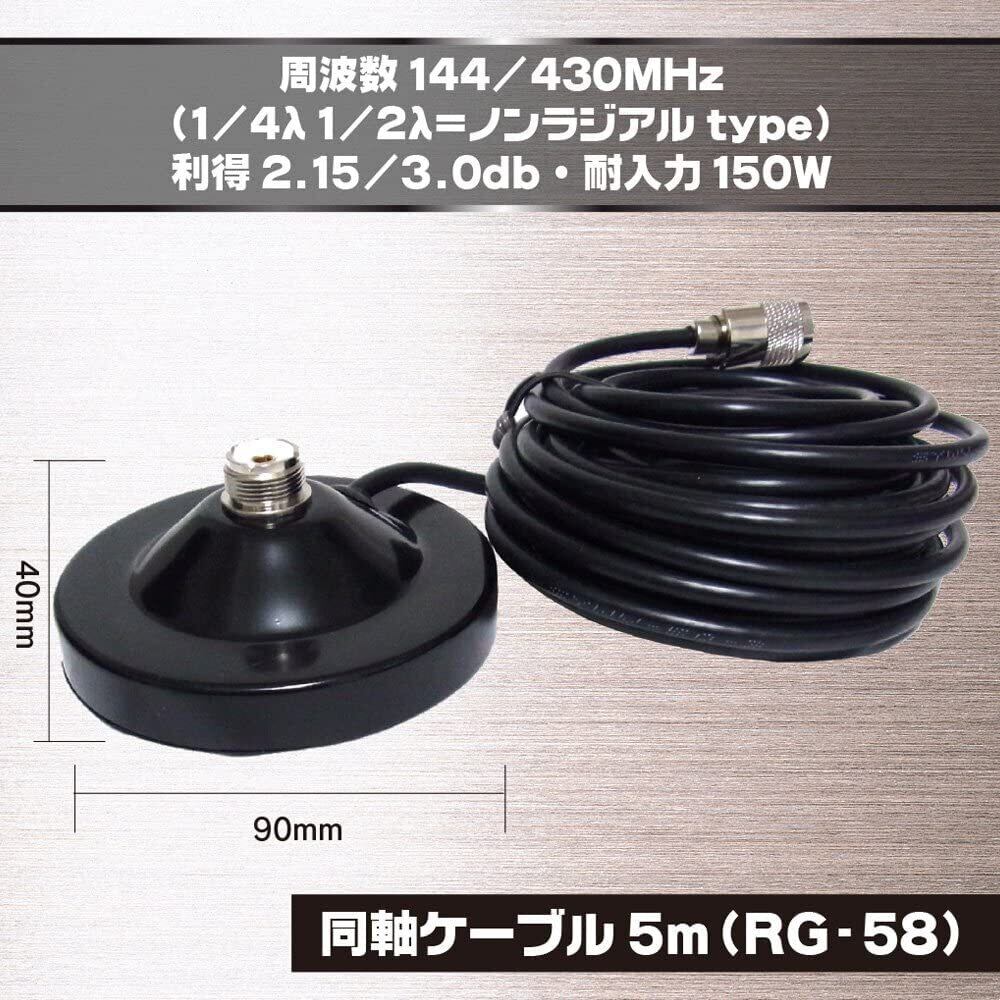 M型接栓 144/430MHz モービルアンテナ マグネット基台 同軸ケーブル 3点セット