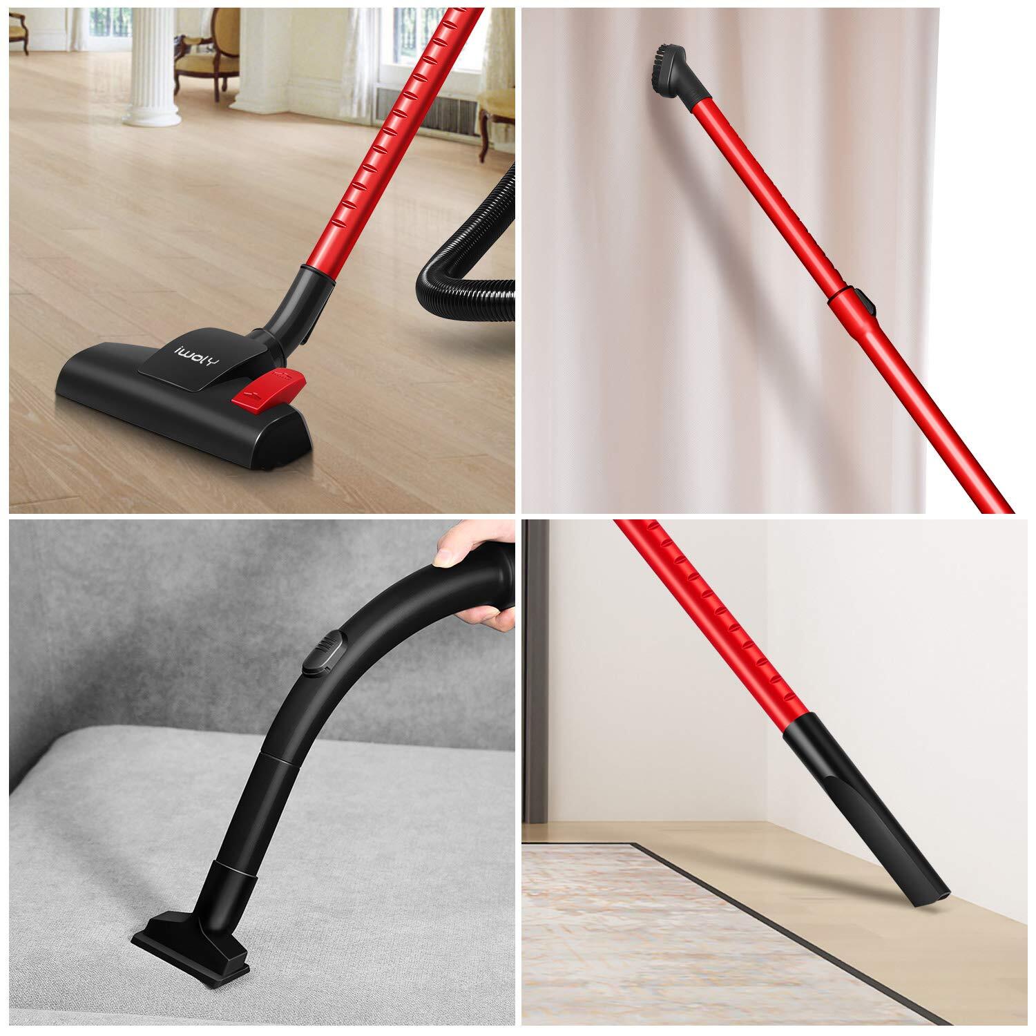 iwoly 掃除機 キャニスター 20000Pa 超強力吸引 ハイパワー 小型 軽量 コード式 サイクロン クリーナー B12 レッド