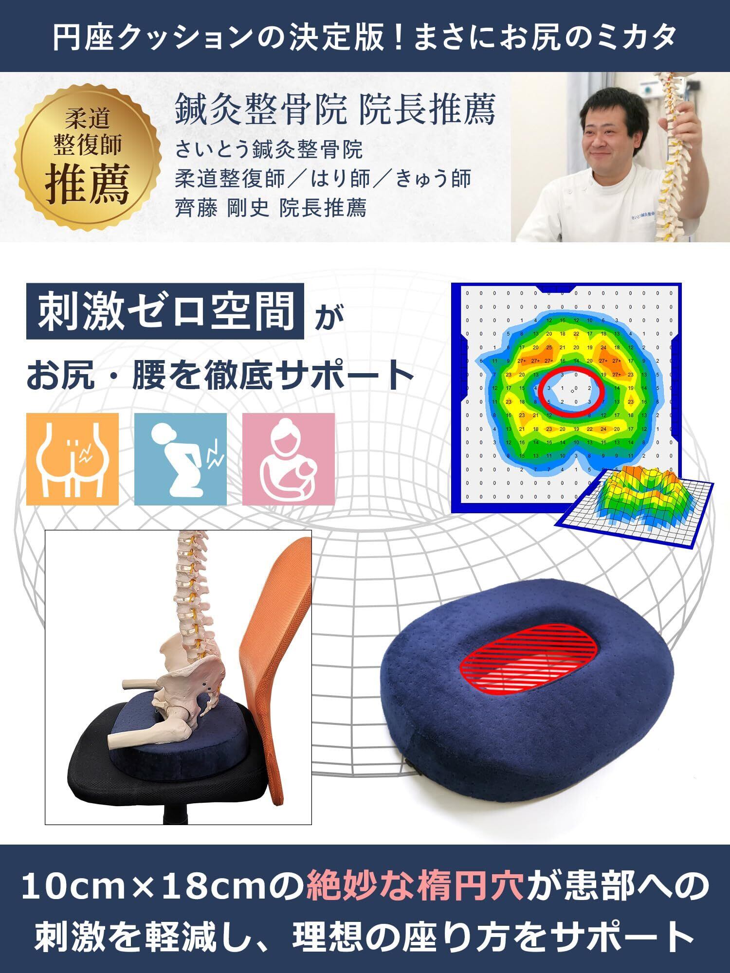 【整骨院院長推薦|姿勢サポート円座クッション】 現役の整骨院院長が監修。長時間のデスクワーク・在宅勤務・産後ケア・痔・腰痛対策に。自然な姿勢をサポートし、腰やお尻の負担を軽減します。