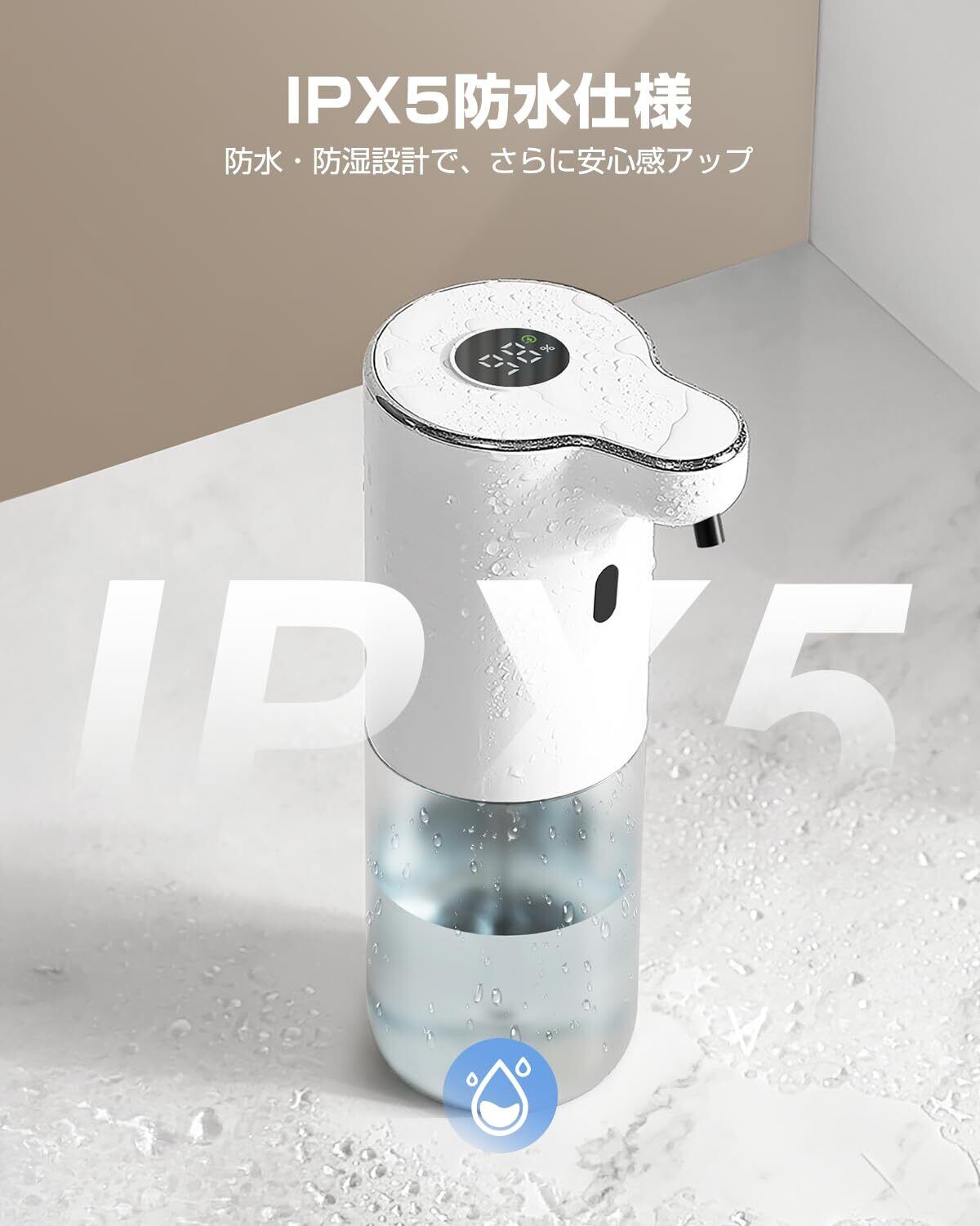 ??「IPX5 防水 + 壁掛け式、二重保護でさらに安心」ハンドソープディスペンサーは IPX5 防水仕様で、水がかかっても大丈夫。壁掛け式なので、子供の手が届かない高さに取り付けられ、いたずら防止にもなり、メンテナンスもラクです。