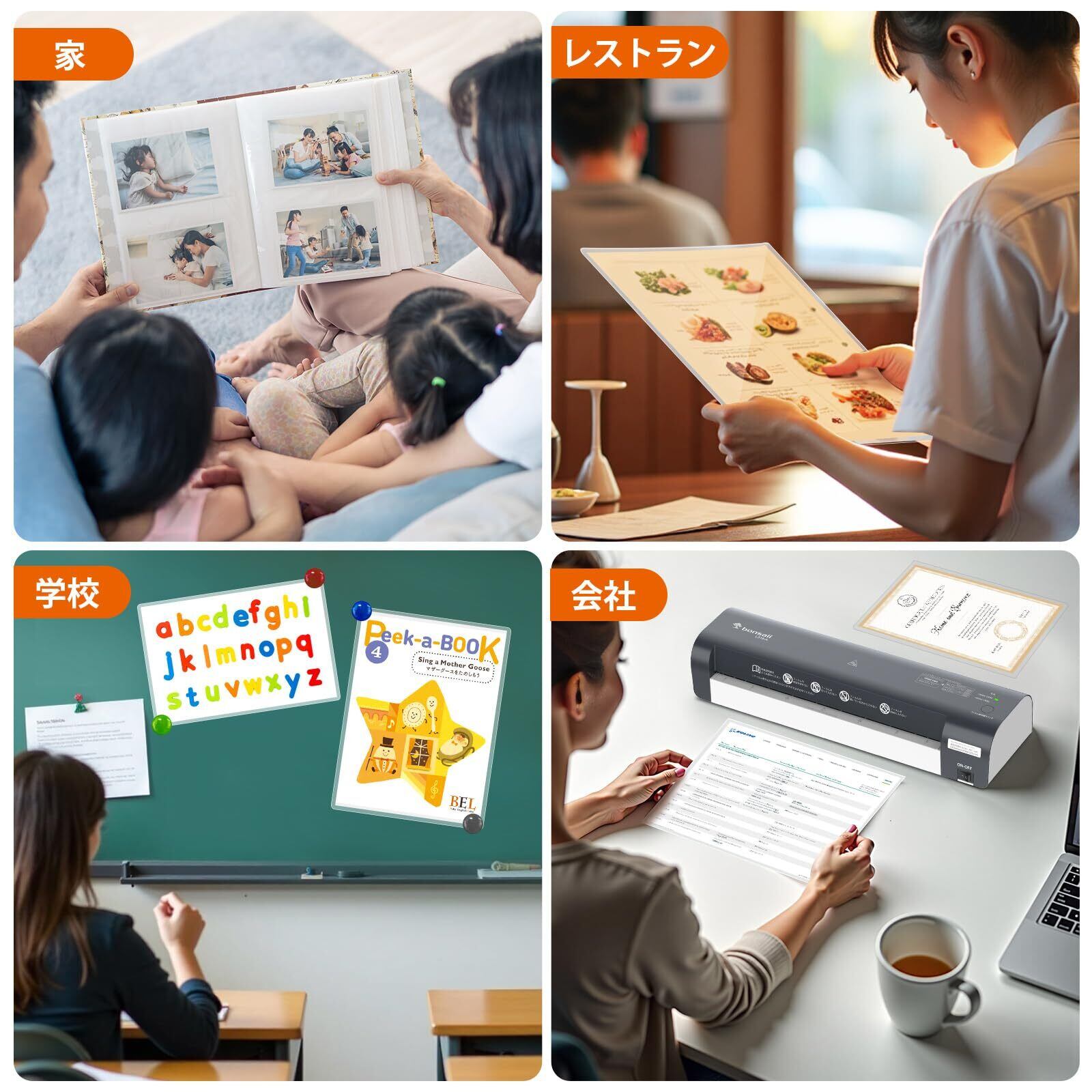 【高効率&静音設計】仕事も家庭もストレスフリー!予熱時間はわずか3-4分、300mm/分の高速ラミネートで、作業時間を大幅短縮。静音設計だから、オフィスでも家庭でも、他人や寝ている子供を気にせず使えます。