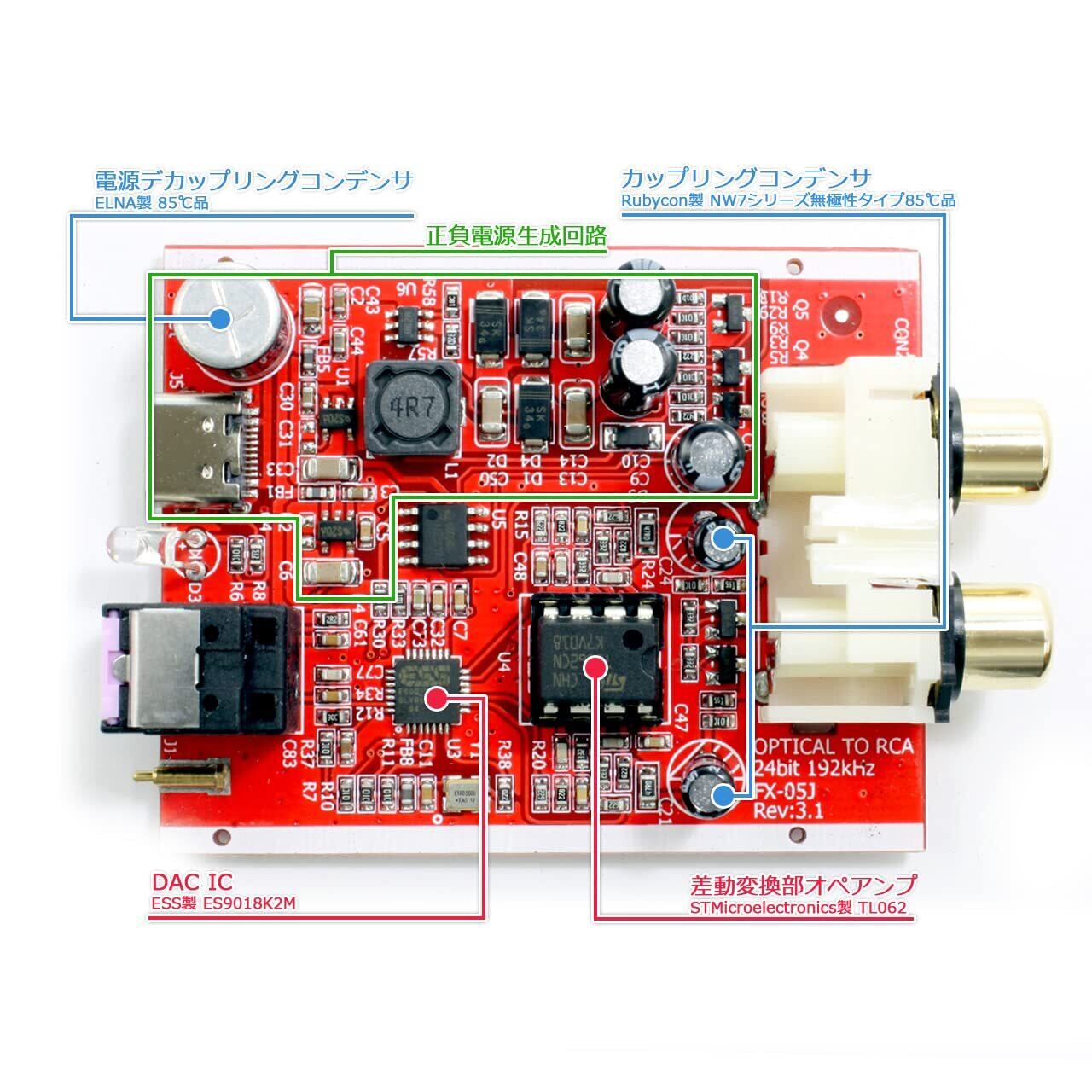 FX-AUDIO- FX-05J 光デジタル入力対応 ハイエンドモバイルオーディオ用DAC ES9018K2M搭載 USB電源駆動 ハイレゾ対応DAC