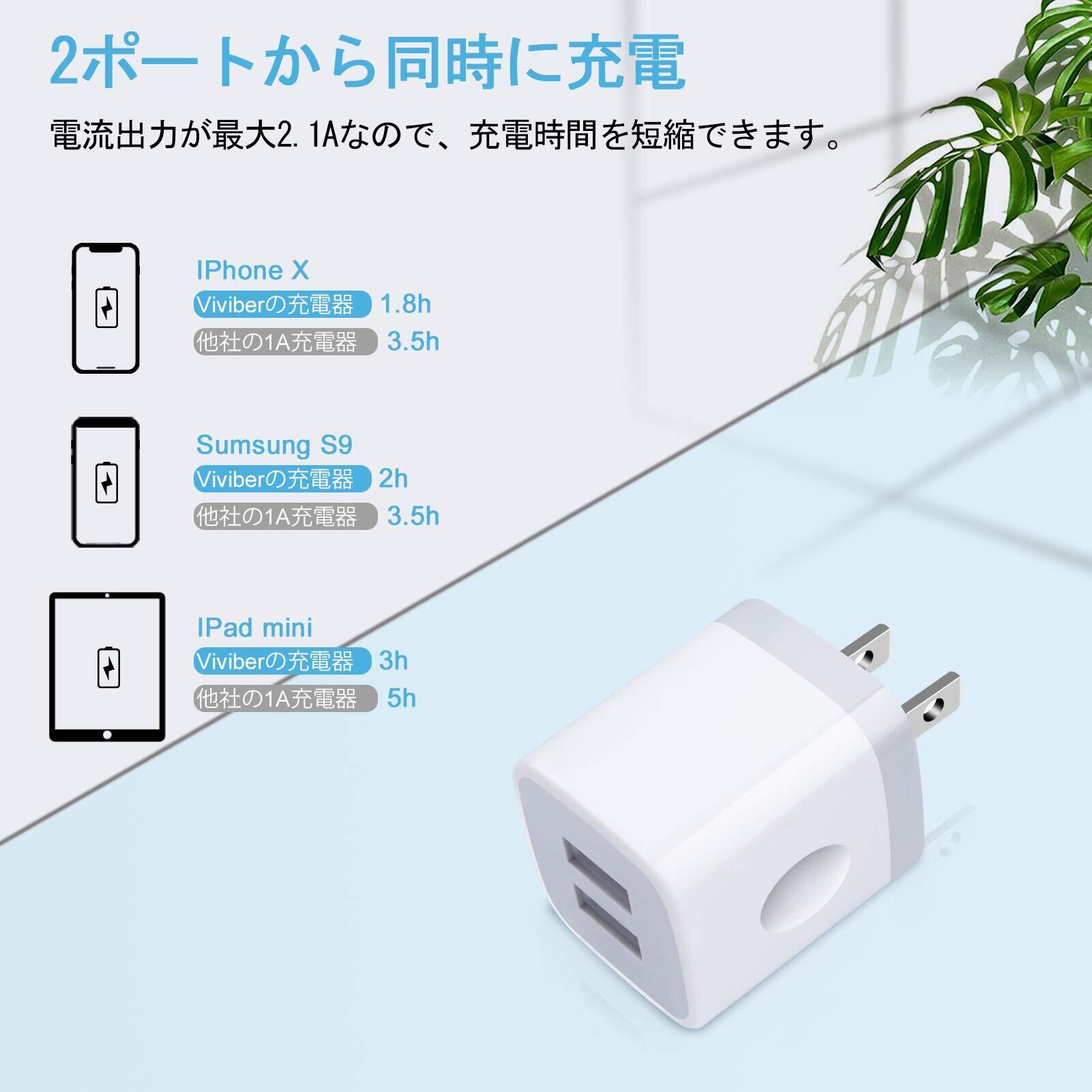 Viviber ACアダプター 2ポート急速充電器 usb 充電器【5個セット】PSE認証 iPhone 充電コンセント コンパクトアダプター スマホ充電器 アイホン充電アダプター iPhone/Android/ゲーム機等対応 (ホワイト)