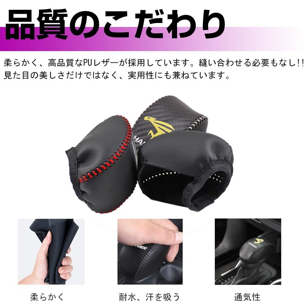 【材質】:より良い感触のためにPUレザーが採用しています。異臭もない、柔らかで使い心地が良い、擦り傷に強いです。耐摩耗性、耐水、汗を吸い取る機能もあります。シフトレバーは使用頻度の高いパーツです。毎日触れる場所だからこそ、お手入れが必要です。変色、汗染みなどになりやすいですが、本製品を装着することによって、経年劣化やダメージを軽減します。