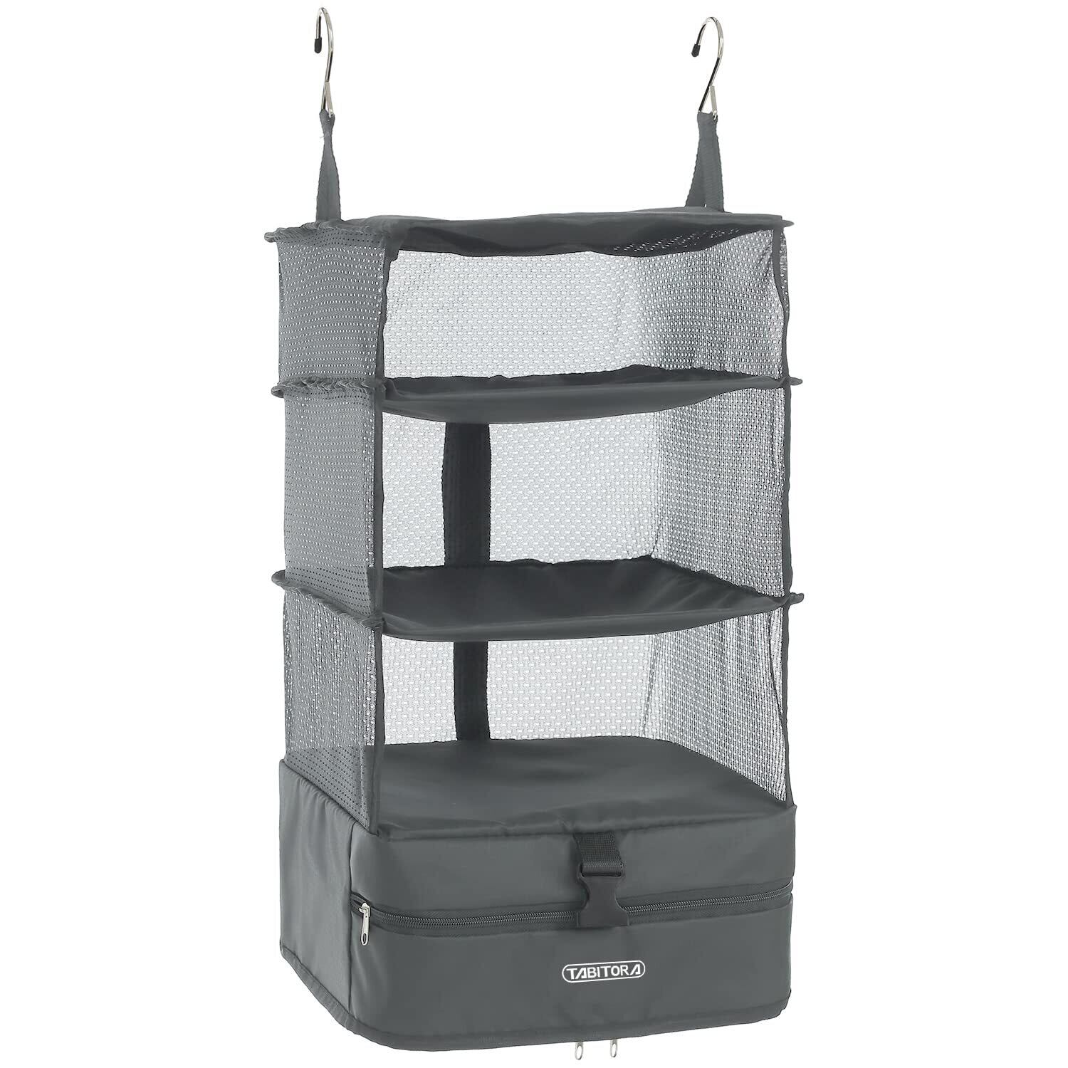 【新着商品】TABITORA(タビトラ) クローゼット吊り下げ収納 インナーバッグ 衣類ラック 収納 旅行 出張 クローゼット 収納ボックス 吊り下げ 省スペース 大容量 衣装ケース 4段 取付簡単 折り畳み式 グレー L