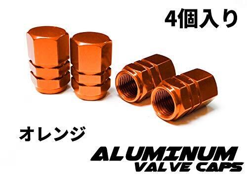 【COTRAX】エアバルブキャップ アルミ 製 ホイール タイヤ キャップ 軽 自動車 バイク アメリカンタイプの自転車用 汎用 ドレスアップ 六角型 4個セット (オレンジ)