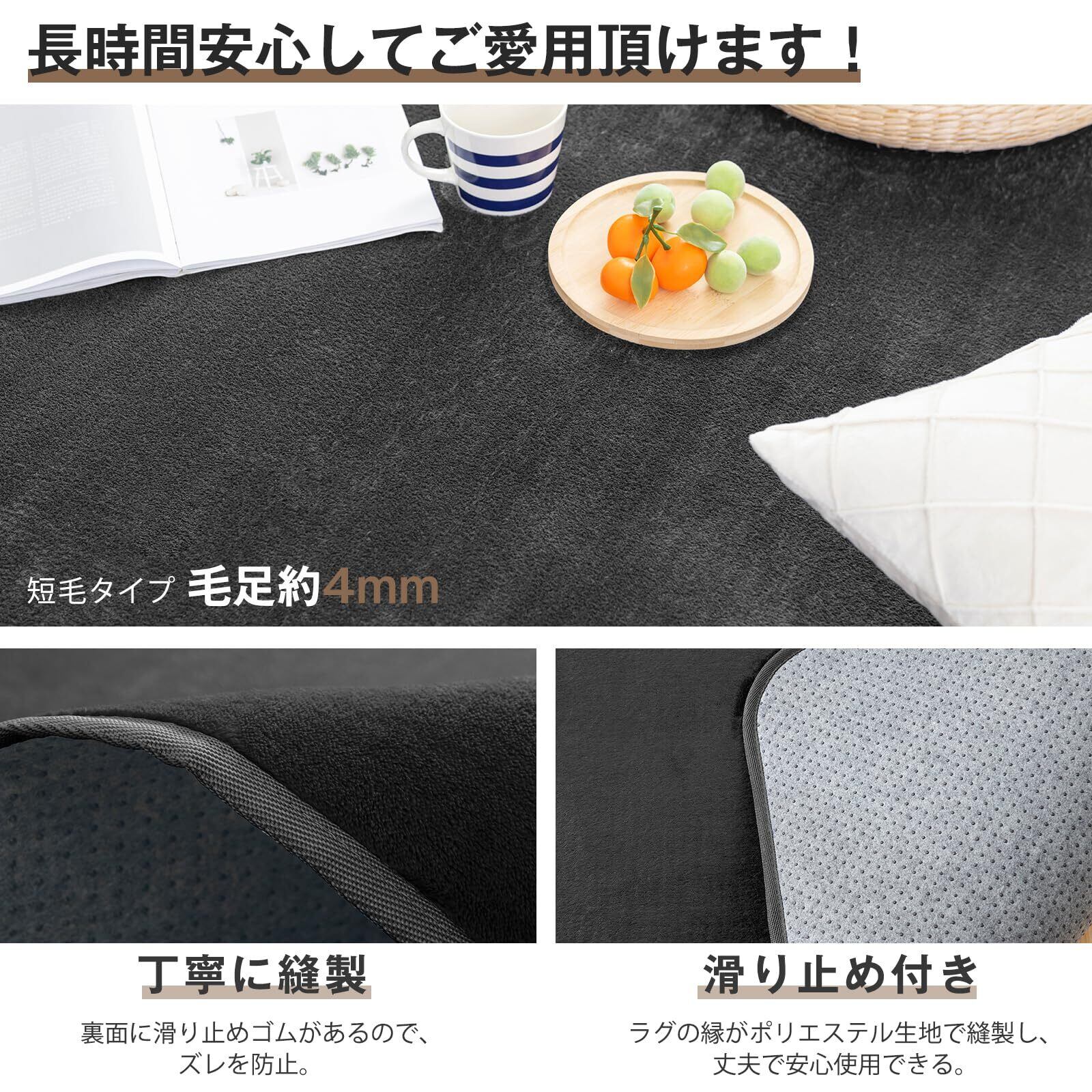 fuwawa ラグ カーペット 滑り止め付 洗える ラグマット 1.5畳 135×185cm 絨毯 オールシーズン快適に使用 フランネルラグ 抗菌 防臭 ホットカーペット対応 無地 ブラック