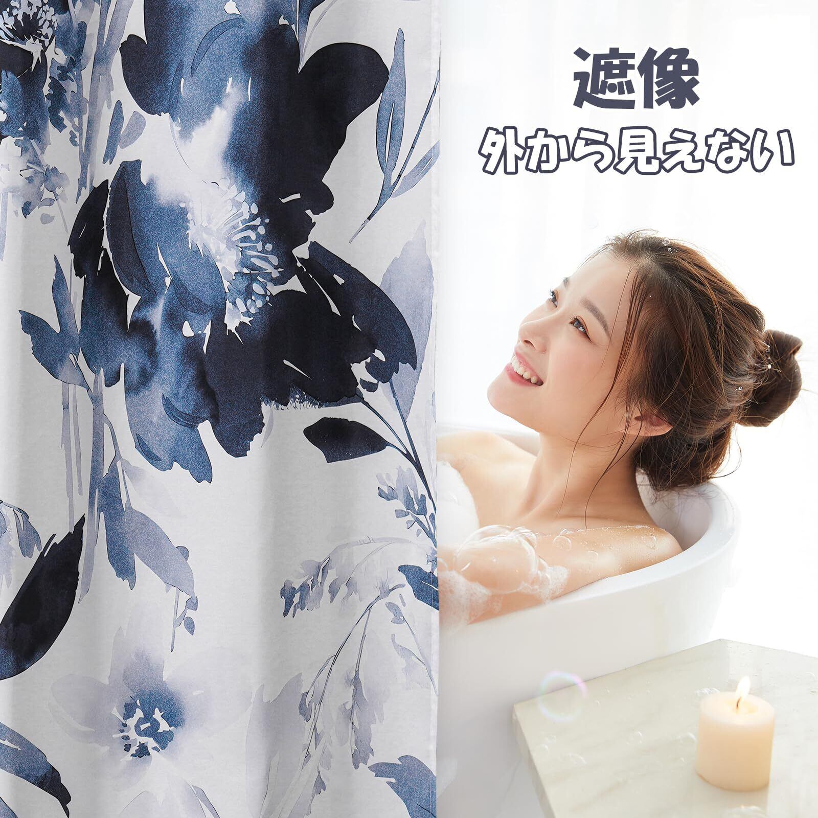 AooHome シャワーカーテン 目隠し 防水防カビ お風呂カーテン 150cm丈 おしゃれ 断熱 間仕切り 速乾 高密度生地 ユニットバス 浴室 花柄 リング付き 取付簡単
