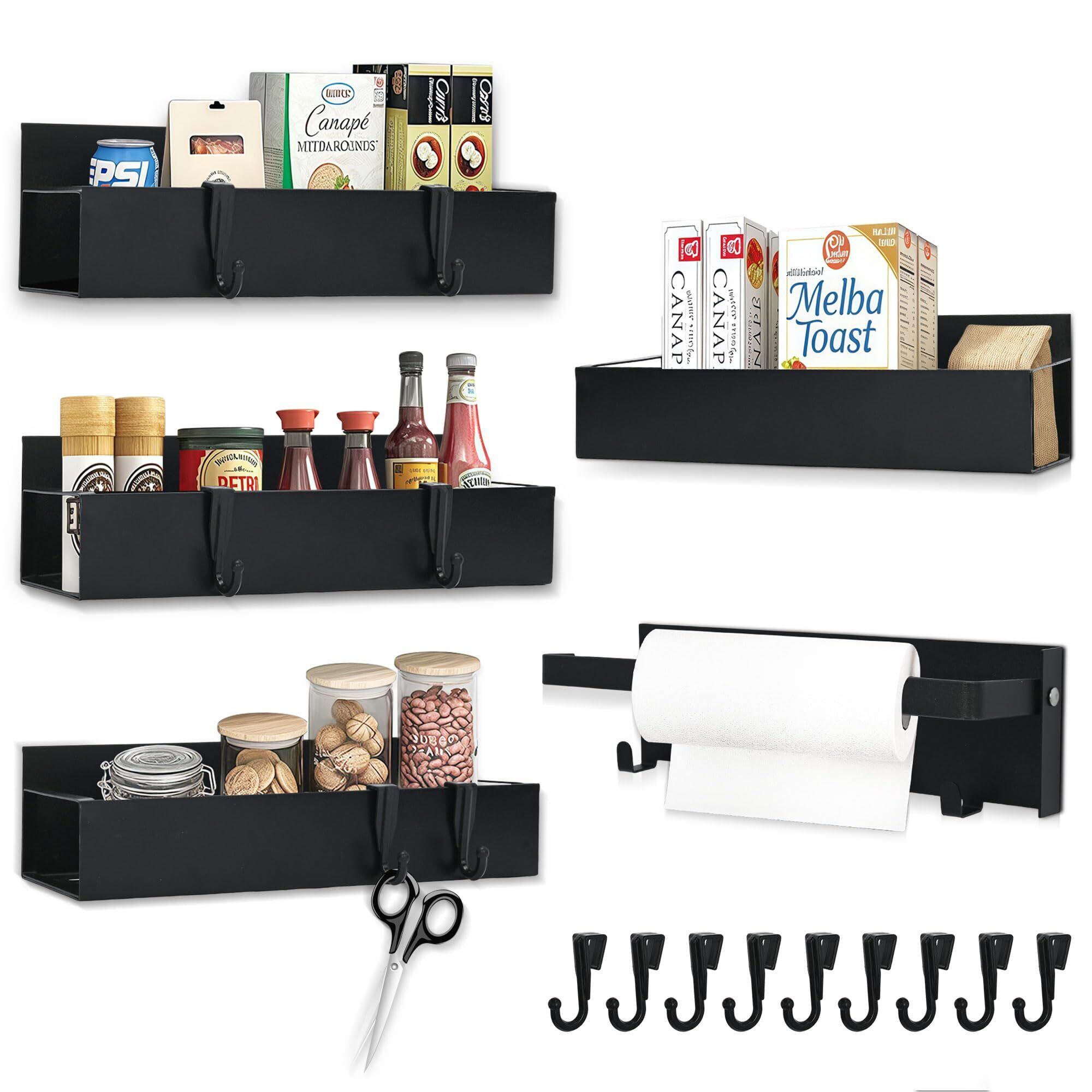 ohbien 調味料ラック マグネット 5点セット 冷蔵庫サイドラック 強力磁石 耐荷重4KG キッチンペーパーホルダー 省スペース 調節可能なフック付き スパイスラック キッチン/風呂場/洗面所 収納 棚(ブラック)