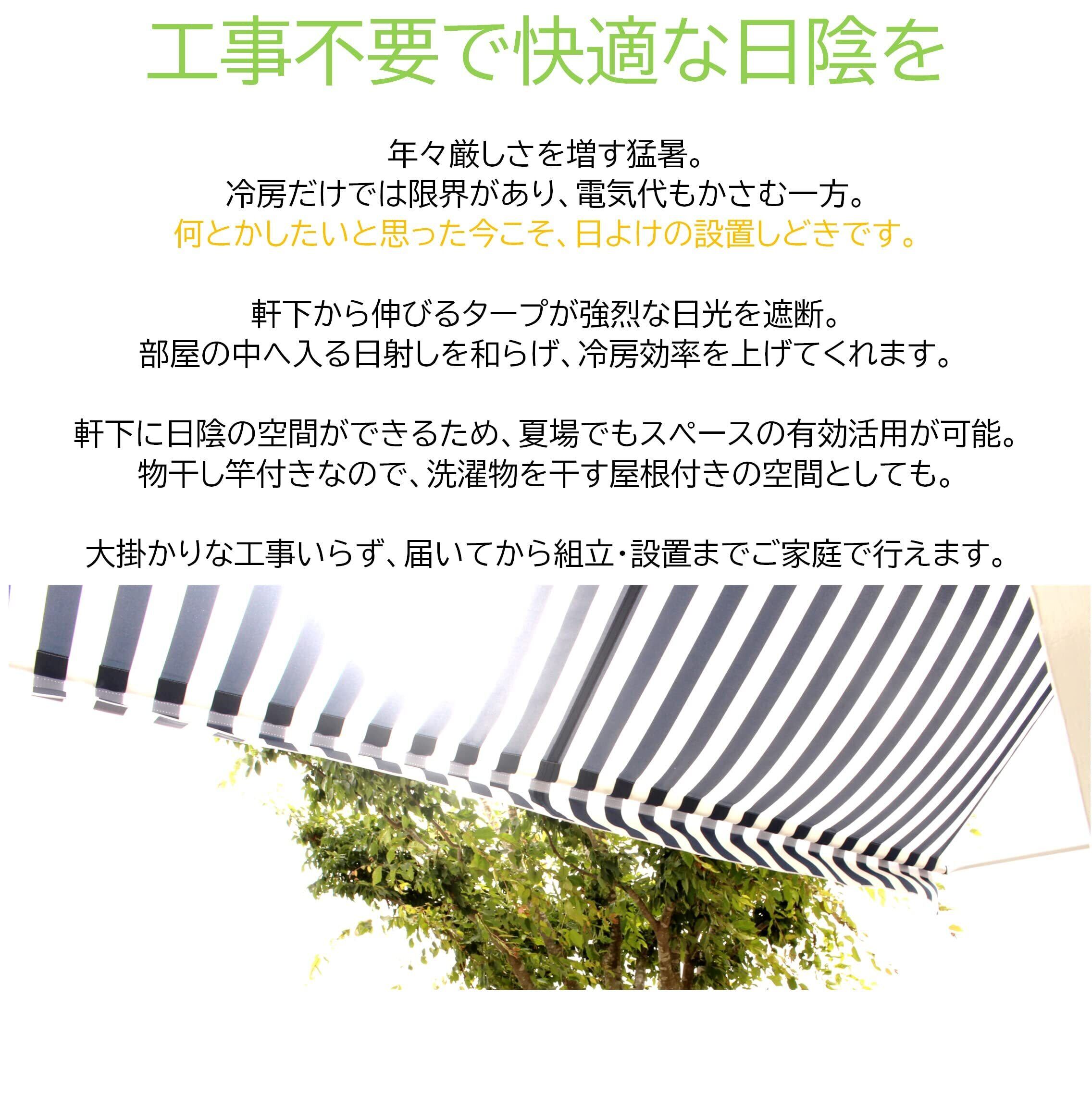 リビングアウト(Living Out) 前幕と物干し竿付きオーニング 日よけ アーム伸縮タイプ 幅3m ストライプ